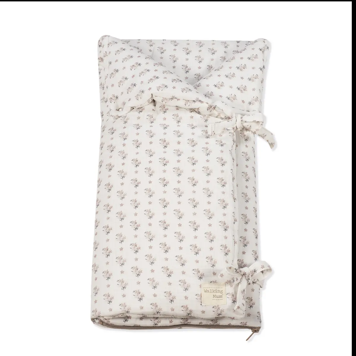 Saco arrullo o saco manta Botton con estampado floral. Está fabricado con una suave muselina 100% algodón. Ideal para los primeros dias del bebé. Es perfecto para los primeros paseos en el capazo. Se convierte en una manta para la cuna. Practico cierre tipo sobre con lazos y cierre con cremallera en la parte inferior en los pies para que el bebé esté abrigado. Gran calidad y mucho estilo. Fabricado en materiales resistentes y de fácil limpieza a mano o a máquina a 30 °C. Walking Mum protege a tu bebé utilizando los mejores tejidos, libres de colorantes azoicos y sustancias nocivas para la salud. Nuestra colección Walking Mum está diseñada con un particular sello de estilo urbano y moderno que no pasa desapercibido, para vestir diferente los paseos con tu bebé. Los accesorios de esta línea son más sport y prácticos, especialmente pensados en mamás y papás modernos que aprecian los diseños más actuales y en tendencia sin dejar de lado la calidad y la funcionalidad de los complementos que hacen más cómodos todos los paseos con sus bebés. Especificaciones: Materiales: 100% algodón. Medidas cerrado 38×73 cm y abierto 97×73 cm.