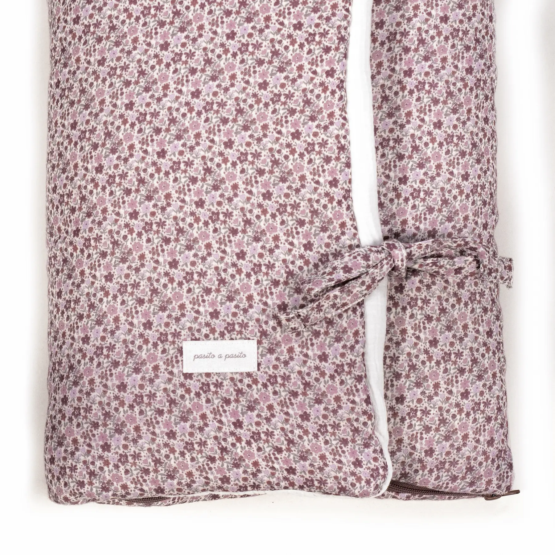 Saco arrullo o saco manta Cherry Flores de Pasito a pasito. Está fabricado con una suave muselina de flores estampada 100% algodón en el exterior y muselina lisa en el interior de 70% bambú y 30% algodón. Ideal para los primeros dias del bebé. Es perfecto para los primeros paseos en el capazo. Se convierte en una manta para la cuna. Practico cierre tipo sobre con lazos y cierre con cremallera en la parte inferior en los pies para que el bebé esté abrigado. Gran calidad y mucho estilo. Todas nuestras fundas están fabricadas conforme a las más exigentes normativas europeas, con materiales de gran calidad, libres de colorantes azoicos, ftalatos y sustancias nocivas para la salud. Tela de fácil limpieza, se recomienda lavar a máquina a 30º. Los productos para bebé de Pasito a Pasito cuentan con un diseño muy diferente a todas las demás. Sus colecciones se caracterizan por el trabajo al detallada, pensadas siempre desde un punto de vista práctico. Utilizan materiales de primera calidad para remarcar la elegancia y la armonía en cada una de sus piezas. Nuestros modelos son exclusivos y de estilo inconfundible, pensados en las madres actuales que gozan de buen gusto y que aprecian los detalles tanto como nosotros. Especificaciones: Materiales: 100% algodón. Universal.