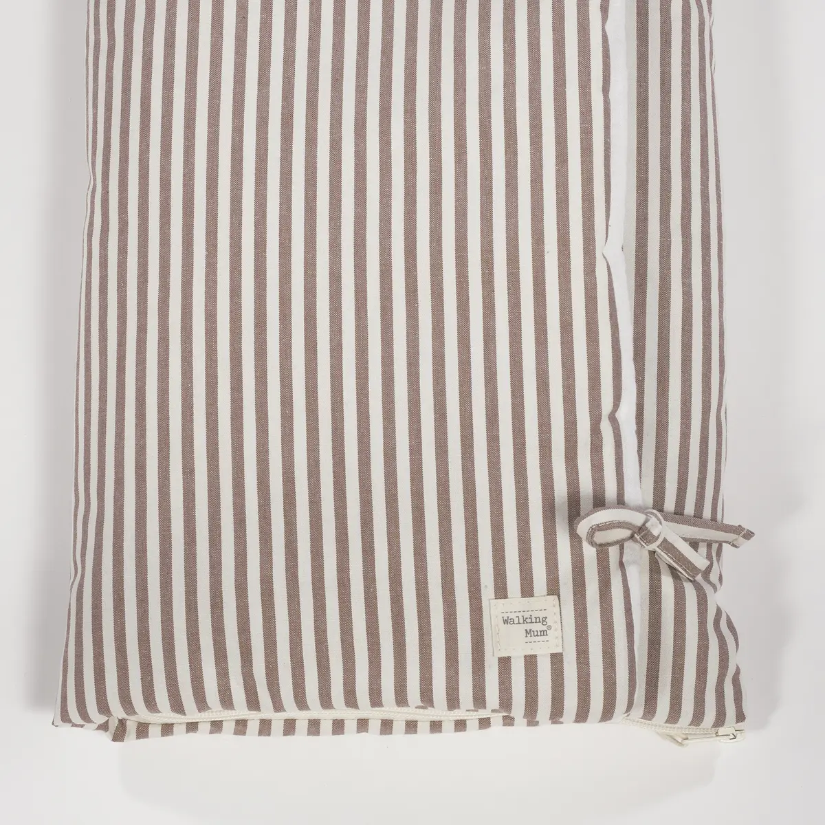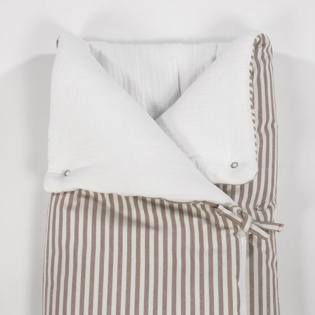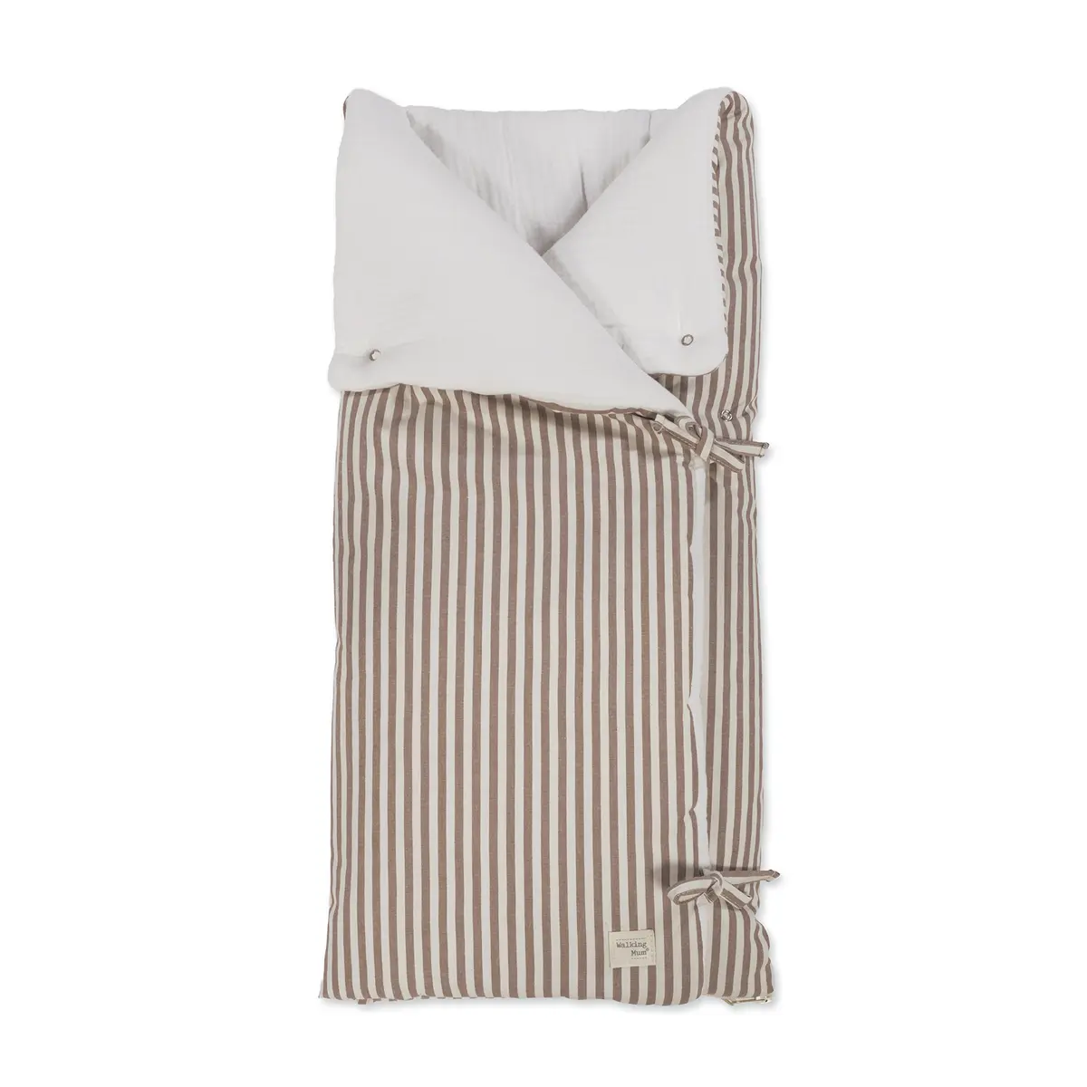 Saco arrullo o saco manta Praliné Rayas Moka. Está fabricado con una suave muselina 100% algodón en el interior. Ideal para los primeros dias del bebé. Es perfecto para los primeros paseos en el capazo. Se convierte en una manta para la cuna. Practico cierre tipo sobre con lazos y cierre con cremallera en la parte inferior en los pies para que el bebé esté abrigado. Gran calidad y mucho estilo. Fabricado en materiales resistentes y de fácil limpieza a mano o a máquina a 30 °C. Walking Mum protege a tu bebé utilizando los mejores tejidos, libres de colorantes azoicos y sustancias nocivas para la salud. Nuestra colección Walking Mum está diseñada con un particular sello de estilo urbano y moderno que no pasa desapercibido, para vestir diferente los paseos con tu bebé. Los accesorios de esta línea son más sport y prácticos, especialmente pensados en mamás y papás modernos que aprecian los diseños más actuales y en tendencia sin dejar de lado la calidad y la funcionalidad de los complementos que hacen más cómodos todos los paseos con sus bebés. Especificaciones: Materiales: exterior 65% algodón/35% poliéster – Interior 100% algodón. Medidas cerrado 38×73 cm y abierto 97×73 cm. TOG 2,5