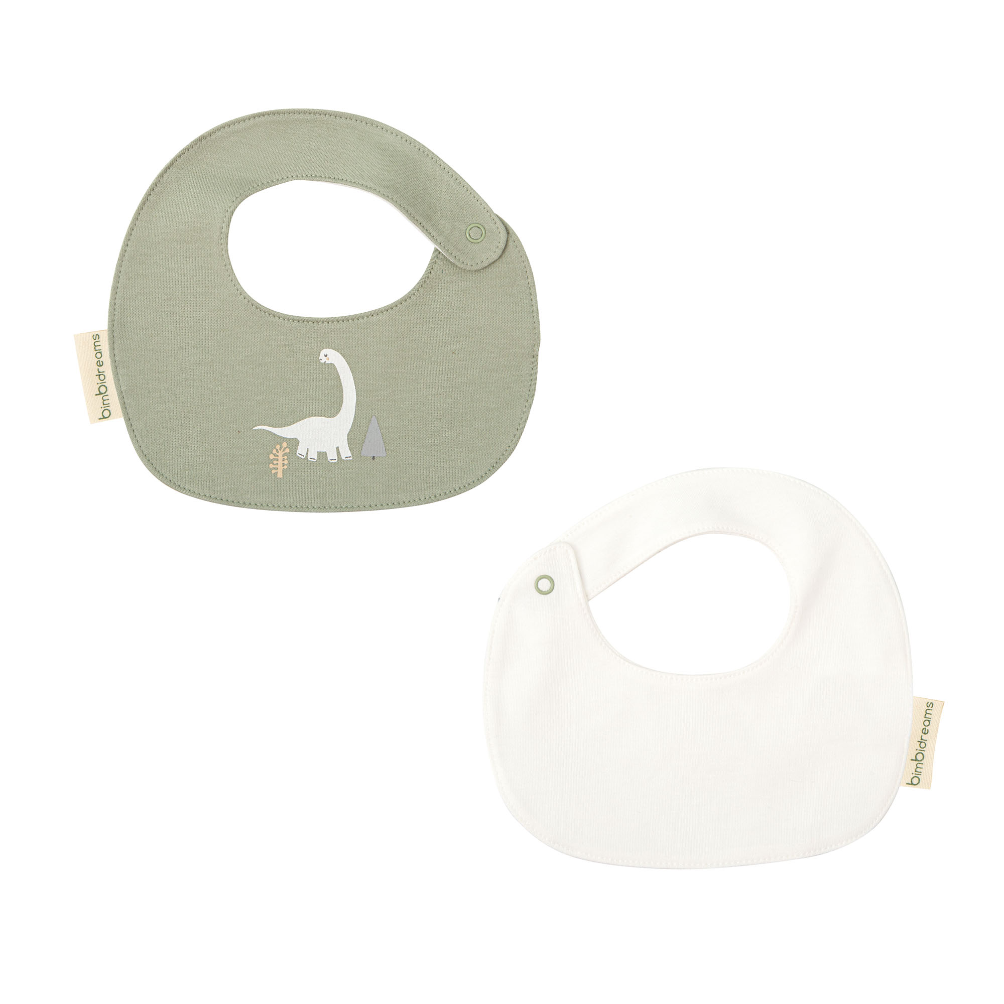 Descubre el pack de 2 baberos «Trex» de Bimbidreams, cómodos y absorbentes para las comidas. Diseño divertido y fácil de lavar.