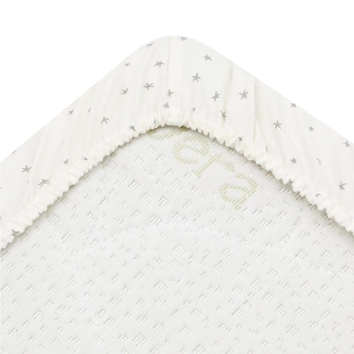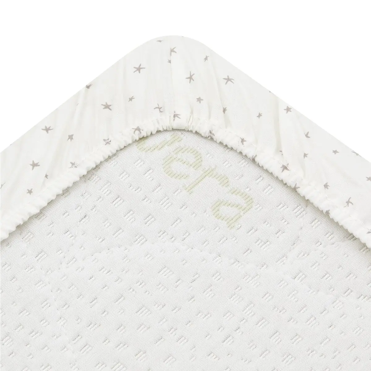La sábana ajustable para cuna 60 de Cambrass se adapta al colchón por los laterales con su goma elástica. Su fabricación con algodón egipcio 100% y el tratamiento Sanitized garantiza su higiene ya que ofrece una protección antimicrobiana duradera que evita el desarrollo de bacterias y hongos así como los malos olores. Presentación en pack de 2 unidades.