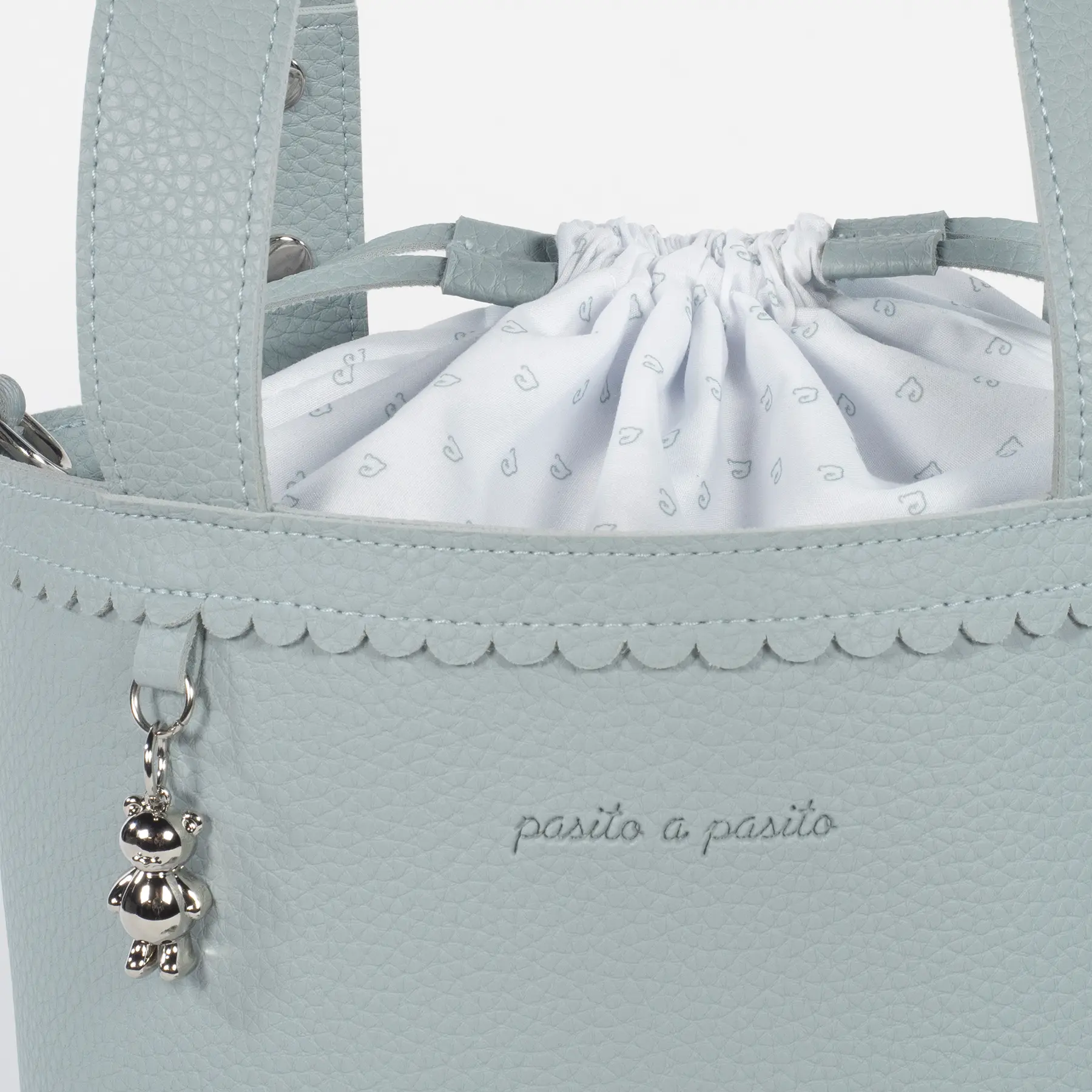Bolso bucket para carrito de bebé Icon Green Pasito a Pasito, fabricada en polipiel de alta calidad en un elegante tono verde. Su diseño tipo cubo incluye un delicado borde festoneado y un detalle colgante metálico en forma de osito que aporta un toque distintivo. . Es el accesorio ideal para llevar lo esencial del bebé con estilo y comodidad durante tus paseos. Su tamaño compacto es perfecto para organizar pañales, biberones y otros objetos indispensables, manteniendo todo al alcance de la mano. La bolsa cuenta con un práctico cierre de tipo saco con cordón ajustable que protege tus pertenencias. Incorpora asa larga para poder usar como bandolera y asas cortas para enganchar al carrito. Combina funcionalidad y diseño refinado, convirtiéndose en un complemento imprescindible para los paseos con tu bebé. Está fabricado con materiales de gran calidad, libres de colorantes azoicos, ftalatos y sustancias nocivas para la salud. Los productos para bebé de Pasito a Pasito cuentan con un diseño muy diferente a todas las demás. Sus colecciones se caracterizan por el trabajo al detallada, pensadas siempre desde un punto de vista práctico. Utilizan materiales de primera calidad para remarcar la elegancia y la armonía en cada una de sus piezas. Nuestros modelos son exclusivos y de estilo inconfundible, pensados para madres actuales que gozan de buen gusto y que aprecian los detalles tanto como nosotros. Especificaciones: Materiales: Eco-leather. Color: Verde. Medidas: 17×22 cm.