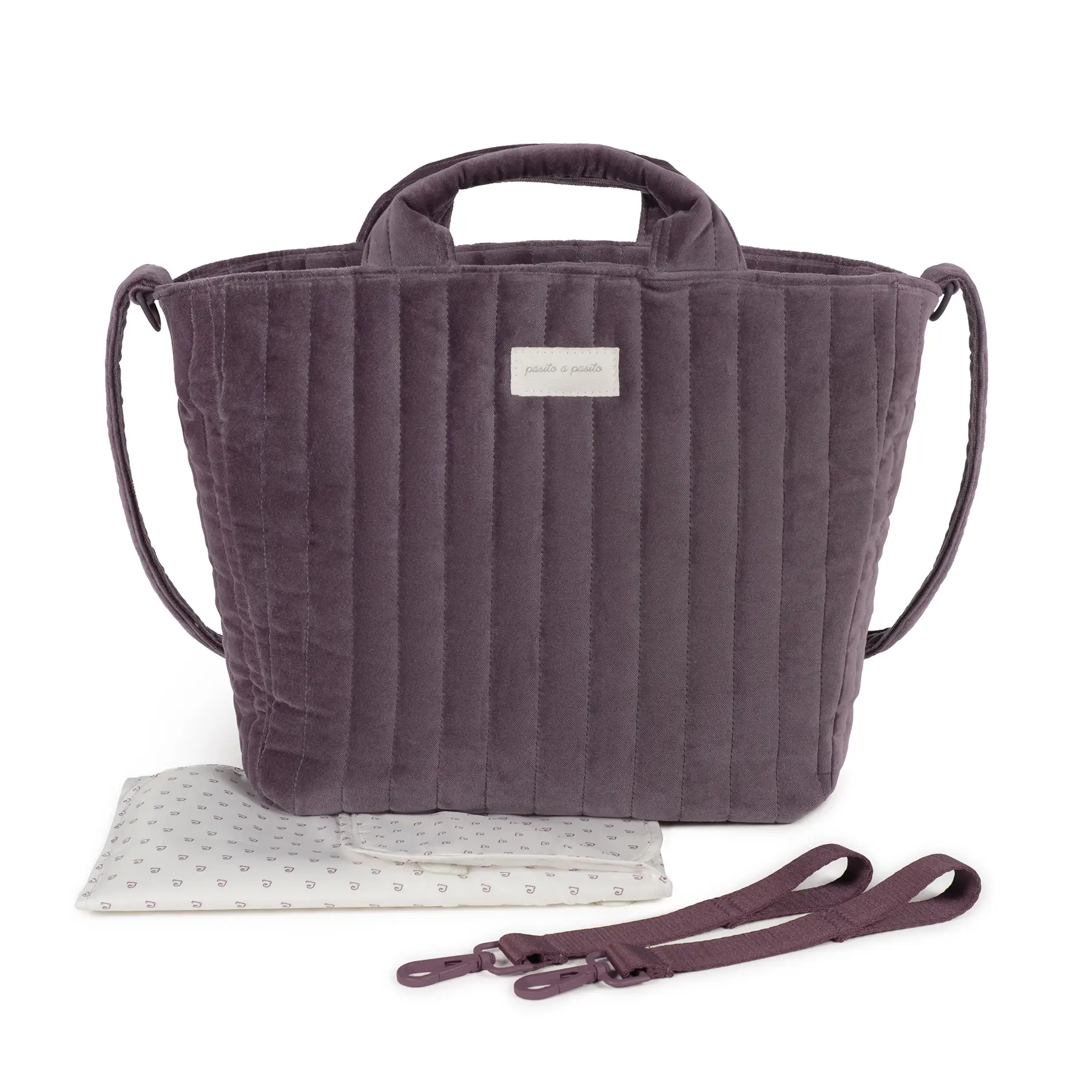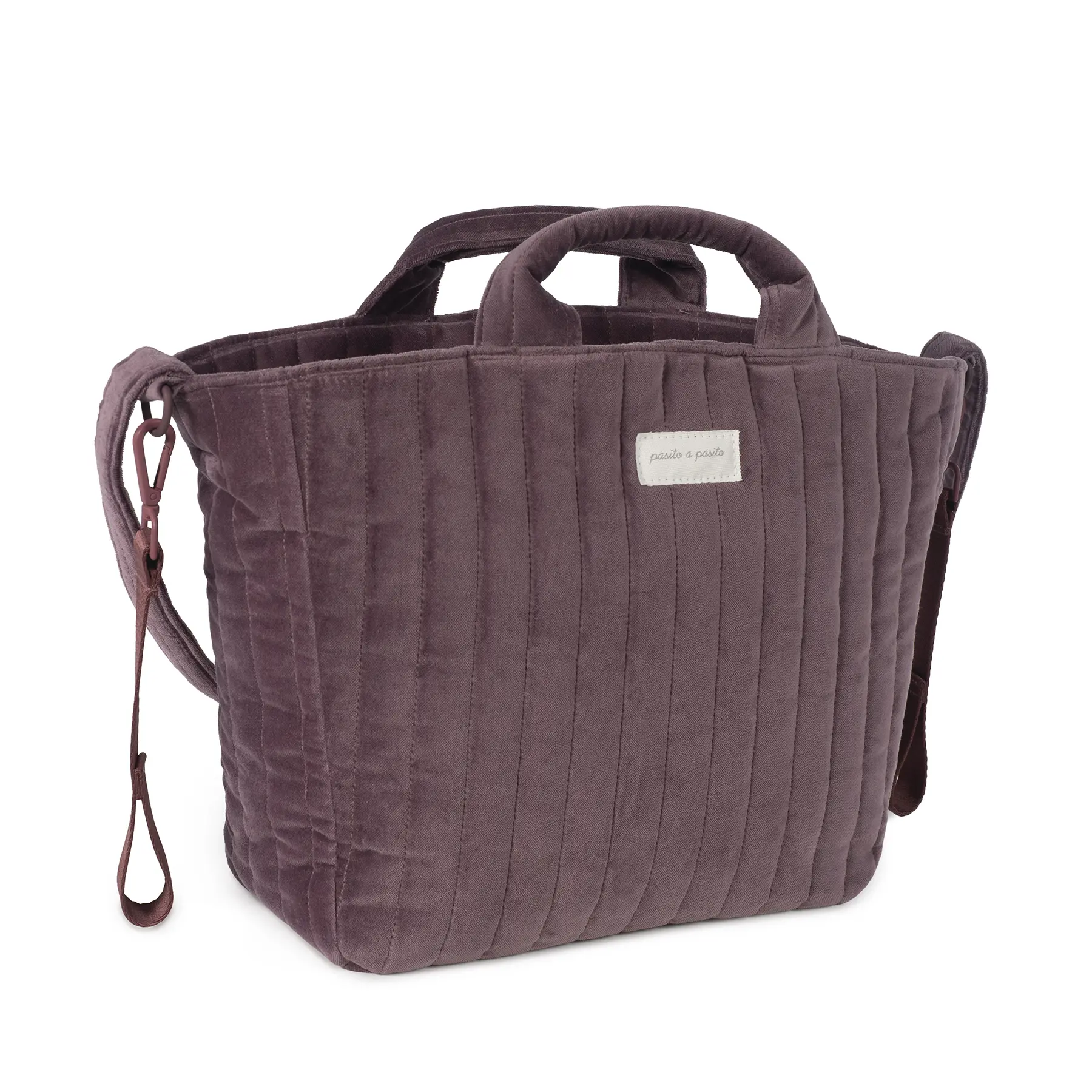 La bolsa para carrito de bebé o el bolso para silla de paseo Cherry Velvet de Pasito a pasito es un modelo único, elaborado en un tercipelo de algodón 100%. Su tratamiento waterproof la hace resistente al agua, garantizando protección y durabilidad en el día a día. Es un diseño muy elegante y práctico que ofrece gran capacidad para que puedas llevar de todo. Viene acondicionado con doble asa, una larga para colgar en el hombro y unas cortas de mano. Incluye asas adicionales universales para colgarla al cochecito. Además, puedes usarla para guardar tus cosas y así evitas llevar dos bolsas al mismo tiempo. Si estás en la dulce espera puedes tenerla preparada como bolsa del bebé para el hospital. Acabados de calidad. La bolsa canastilla de bebé cuenta con un forro interior y bolsillos para colocar de forma organizada el biberón, cubiertos, toallitas, pañales, cremas y cualquier otra cosa que necesite tu hijo. Entre los bolsillos hay un bolsillo térmico para biberones y un bolsillo plastificado para la ropa mojada. Incluye cambiador. Está fabricado con materiales de gran calidad, libres de colorantes azoicos, ftalatos y sustancias nocivas para la salud. Además, se puede lavar a mano o a máquina a temperaturas de hasta 30º. Los productos para bebé de Pasito a Pasito cuentan con un diseño muy diferente a todas las demás. Sus colecciones se caracterizan por el trabajo al detallada, pensadas siempre desde un punto de vista práctico. Utilizan materiales de primera calidad para remarcar la elegancia y la armonía en cada una de sus piezas. Nuestros modelos son exclusivos y de estilo inconfundible, pensados para madres actuales que gozan de buen gusto y que aprecian los detalles tanto como nosotros. Especificaciones: Materiales: 100% algodón. Medidas: 37X30X12 cm.