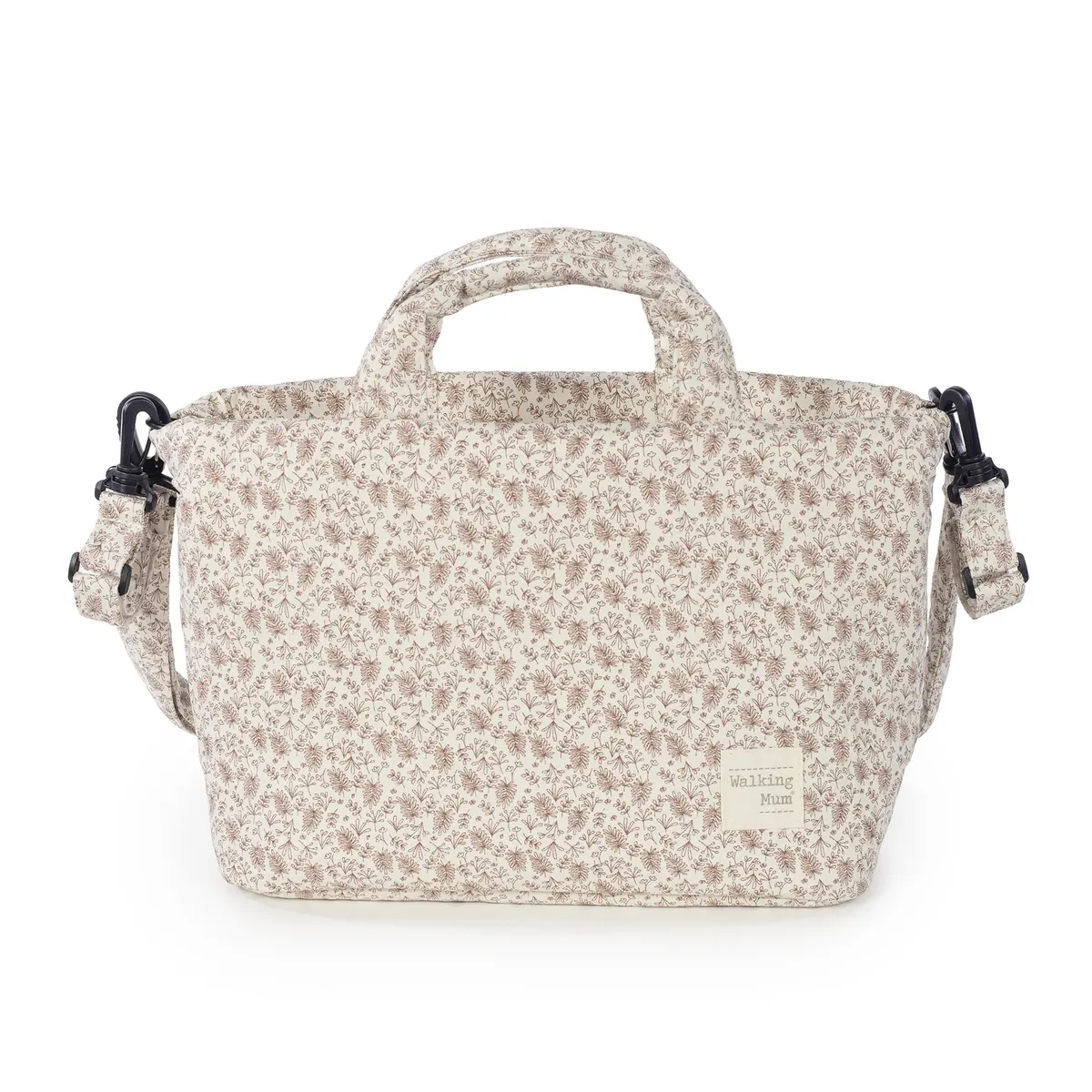 Bolso cambiador Gala Cerise con estampado floral para silla de paseo que incluye cambiador para bebe. Bolsa canastilla muy ligera, resistente y de gran capacidad para llevar todo lo necesario para el paseo del bebe. Tiene multiples bolsillos para poder tener todo ordenado. En el interior incopora un bolsillo plastificado para la ropa húmeda, un bolsillo térmico para biberones y dos bolsillos para lo que necesites tener más a mano. La bolsa tiene un sistema universal de fijación, con 2 asas cortas ajustables que facilita la colocación en cualquier modelo de silla de paseo. También incorpora una asa larga para poder colgarla en el hombro y asas cortas para cogerla con la mano. Gran calidad y mucho estilo. Fabricada en algodón 100% con un tratamiento waterproof, de fácil limpieza a mano o a máquina a 30 °C. Walking Mum protege a tu bebé utilizando los mejores tejidos, libres de colorantes azoicos y sustancias nocivas para la salud. Nuestra colección Walking Mum está diseñada con un particular sello de estilo urbano y moderno que no pasa desapercibido, para vestir diferente los paseos con tu bebé. Las bolsas de maternidad de esta línea son más sport y prácticas, especialmente pensadas en mamás y papás modernos que aprecian los diseños más actuales y en tendencia sin dejar de lado la calidad y la funcionalidad de los accesorios que complementan y hacen más cómodos todos los paseos con sus bebés. Especificaciones: Materiales: 100% algodón con tratamiento waterpfoof. Medidas: 42x24x17 cm.