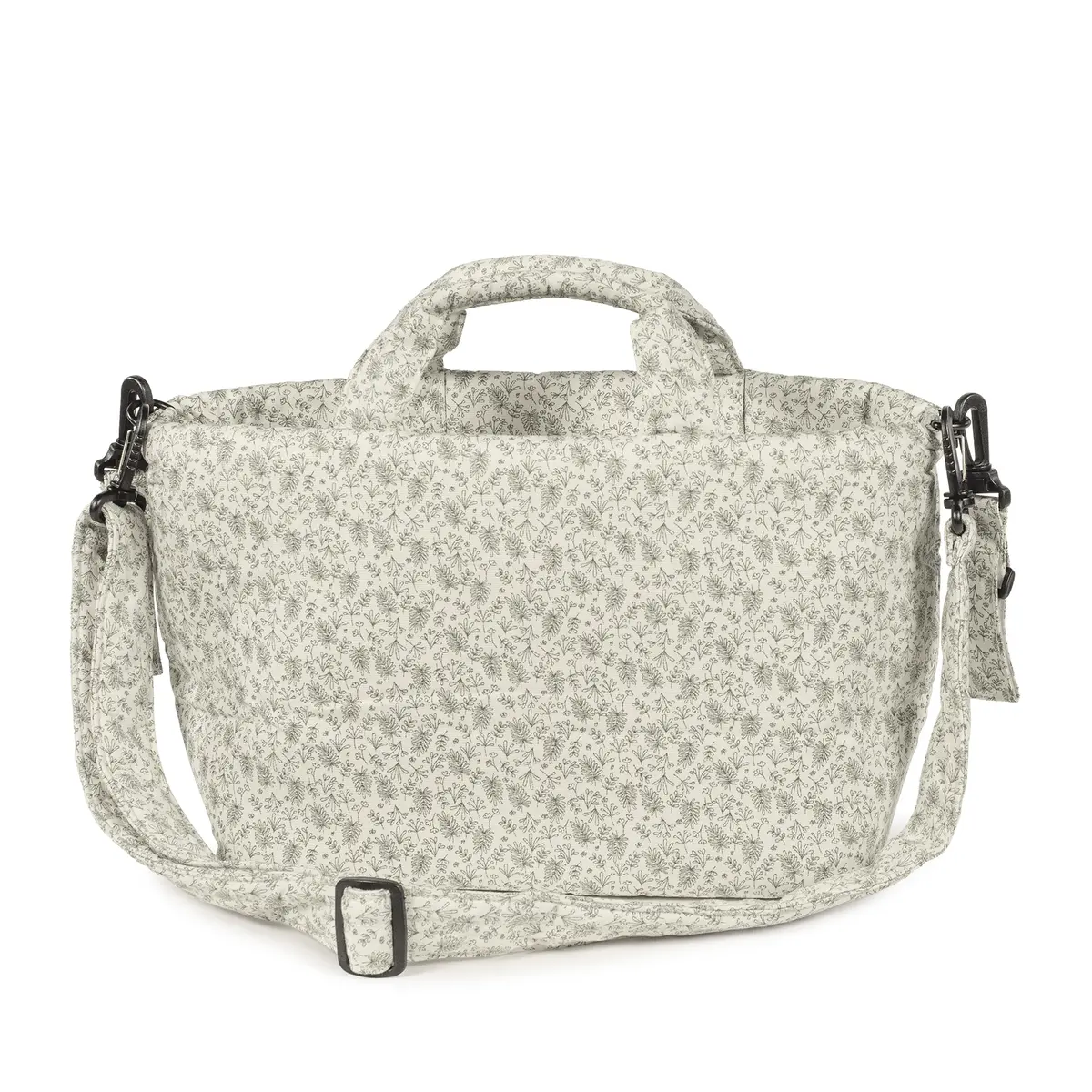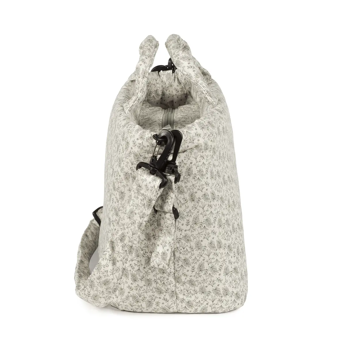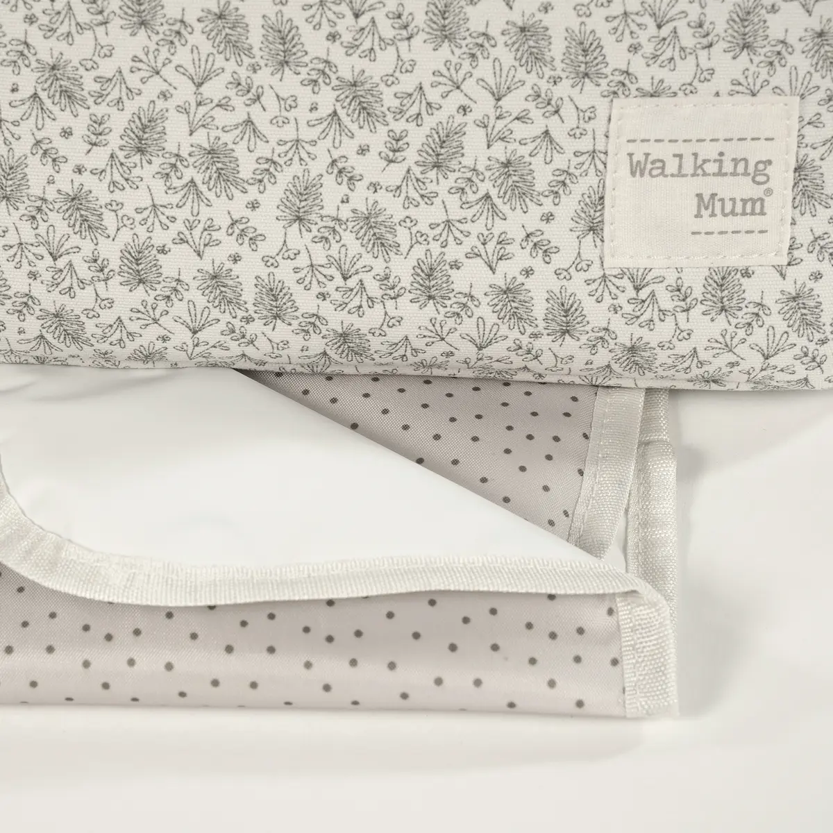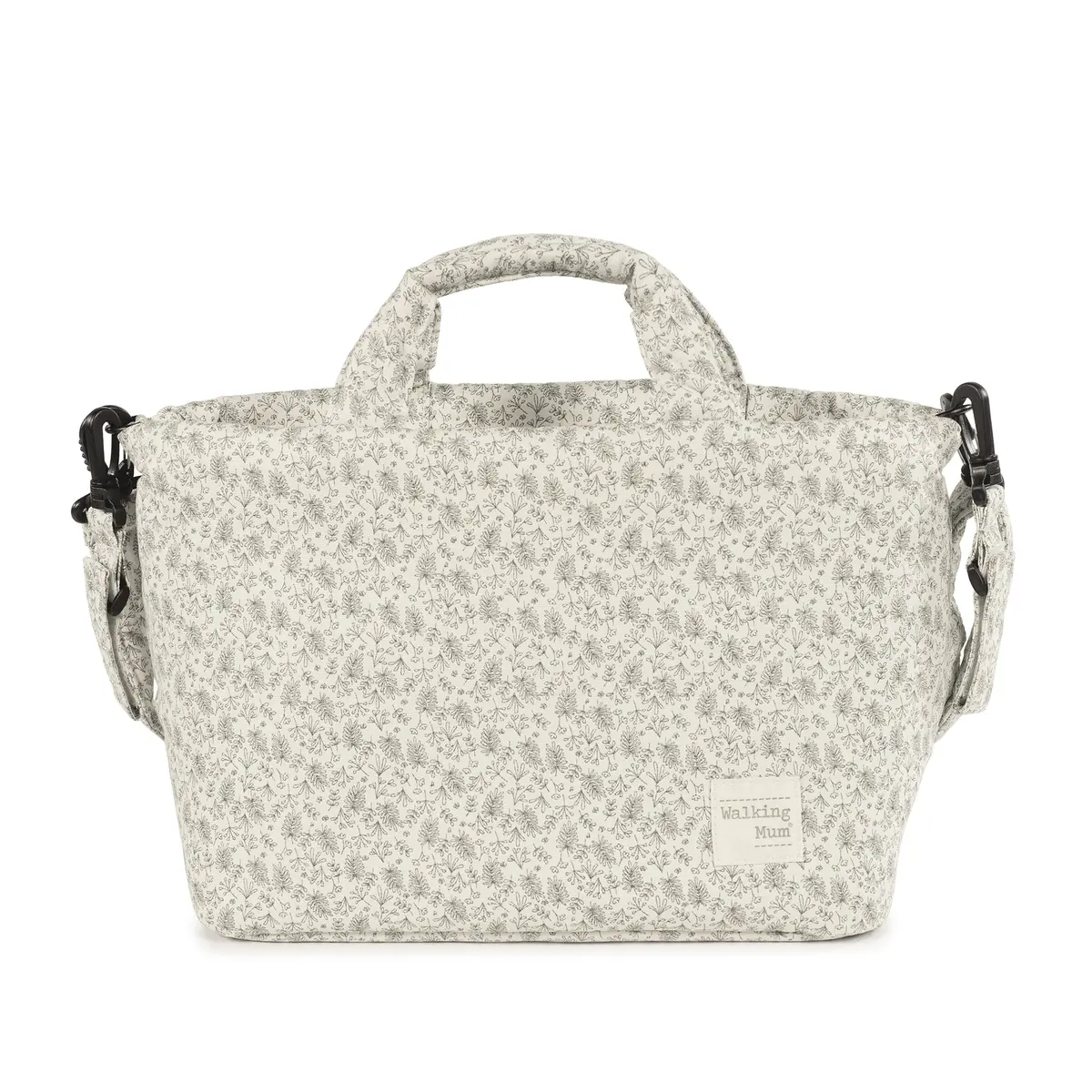 Bolso cambiador Gala Mint con estampado floral para silla de paseo que incluye cambiador para bebe. Bolsa canastilla muy ligera, resistente y de gran capacidad para llevar todo lo necesario para el paseo del bebe. Tiene multiples bolsillos para poder tener todo ordenado. En el interior incopora un bolsillo plastificado para la ropa húmeda, un bolsillo térmico para biberones y dos bolsillos para lo que necesites tener más a mano. La bolsa tiene un sistema universal de fijación, con 2 asas cortas ajustables que facilita la colocación en cualquier modelo de silla de paseo. También incorpora una asa larga para poder colgarla en el hombro y asas cortas para cogerla con la mano. Gran calidad y mucho estilo. Fabricada en algodón 100% con un tratamiento waterproof, de fácil limpieza a mano o a máquina a 30 °C. Walking Mum protege a tu bebé utilizando los mejores tejidos, libres de colorantes azoicos y sustancias nocivas para la salud. Nuestra colección Walking Mum está diseñada con un particular sello de estilo urbano y moderno que no pasa desapercibido, para vestir diferente los paseos con tu bebé. Las bolsas de maternidad de esta línea son más sport y prácticas, especialmente pensadas en mamás y papás modernos que aprecian los diseños más actuales y en tendencia sin dejar de lado la calidad y la funcionalidad de los accesorios que complementan y hacen más cómodos todos los paseos con sus bebés. Especificaciones: Materiales: 100% algodón con tratamiento waterpfoof. Medidas: 42x24x17 cm.