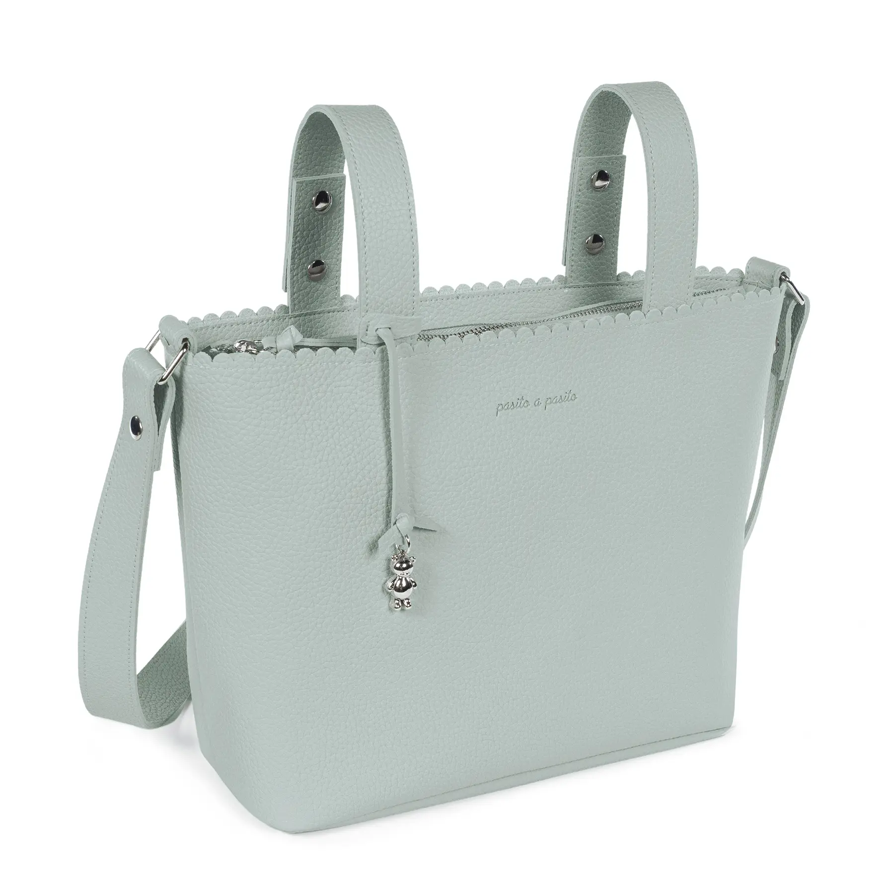 El bolso organizador o crossbody Icon Green de Pasito a pasito elaborado en resistente y delicada polipiel para silla de paseo es un modelo muy ligero además de ser resistente y espacioso para que puedas llevar todo lo que podrías necesitar durante el paseo de tu bebé. Aparte de la gran capacidad que tiene, está distribuido para facilitarte la organización, con varios bolsillos que te ayudarán a colocar todos tus complementos ordenados y así puedes ubicarlos más fácil cuando vayas a usarlos. Incorpora un bolsillo interior térmico para botellas o biberones. Su diseño lo hacen perfecto para usar a diario y combinar con tus looks. Está fabricado con materiales de gran calidad, libres de colorantes azoicos, ftalatos y sustancias nocivas para la salud. Los productos para bebé de Pasito a Pasito cuentan con un diseño muy diferente a todas las demás. Sus colecciones se caracterizan por el trabajo al detallada, pensadas siempre desde un punto de vista práctico. Utilizan materiales de primera calidad para remarcar la elegancia y la armonía en cada una de sus piezas. Nuestros modelos son exclusivos y de estilo inconfundible, pensados para madres actuales que gozan de buen gusto y que aprecian los detalles tanto como nosotros. Especificaciones: Materiales: Eco-leather. Color: Verde. Medidas: 30X34X10 cm.
