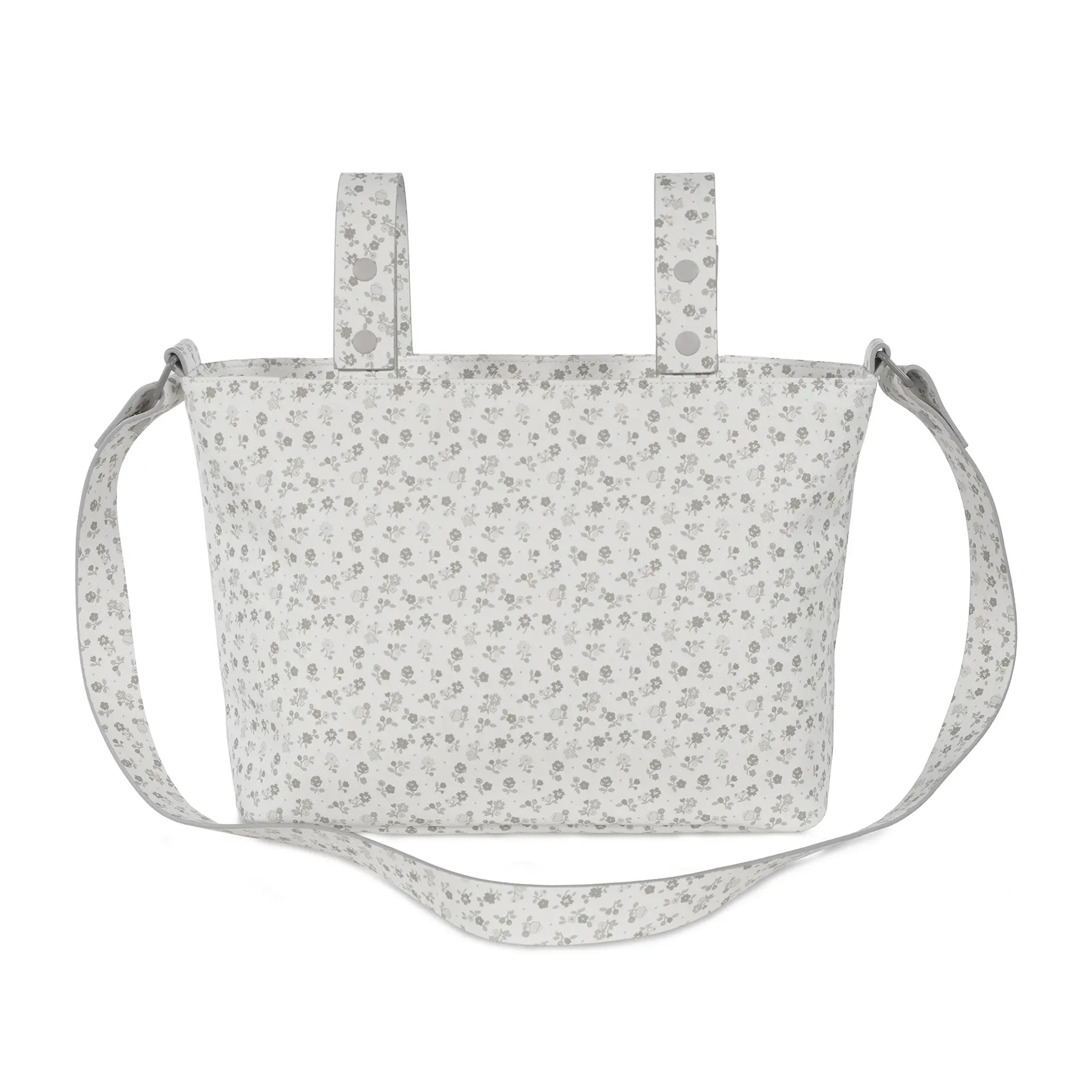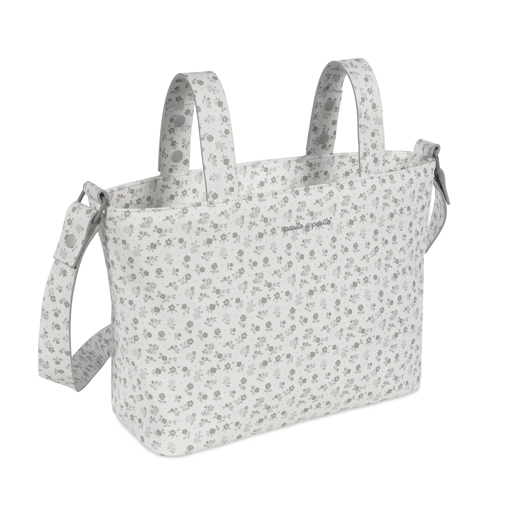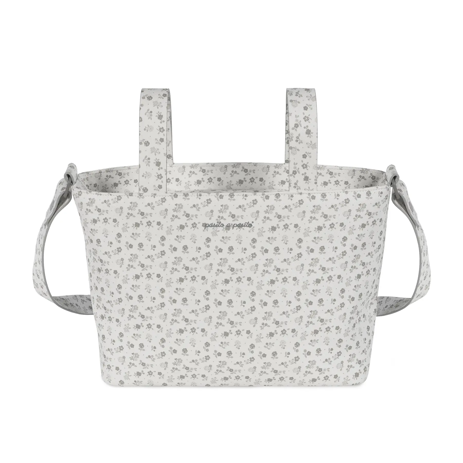 El bolso organizador o crossbody Little Bloom Flores gris de Pasito a pasito elaborado en resistente y delicada polipiel impresa en flores para silla de paseo es un modelo muy ligero además de ser resistente y espacioso para que puedas llevar todo lo que podrías necesitar durante el paseo de tu bebé. Aparte de la gran capacidad que tiene, está distribuido para facilitarte la organización, con varios bolsillos que te ayudarán a colocar todos tus complementos ordenados y así puedes ubicarlos más fácil cuando vayas a usarlos. Incorpora un bolsillo interior térmico para botellas o biberones. Viene acondicionado con doble asa, una larga para colgar en el hombro y unas cortas para colgarla al cochecito. Su diseño lo hacen perfecto para usar a diario y combinar con tus looks. Está fabricado con materiales de gran calidad, libres de colorantes azoicos, ftalatos y sustancias nocivas para la salud. Los productos para bebé de Pasito a Pasito cuentan con un diseño muy diferente a todas las demás. Sus colecciones se caracterizan por el trabajo al detallada, pensadas siempre desde un punto de vista práctico. Utilizan materiales de primera calidad para remarcar la elegancia y la armonía en cada una de sus piezas. Nuestros modelos son exclusivos y de estilo inconfundible, pensados para madres actuales que gozan de buen gusto y que aprecian los detalles tanto como nosotros. Especificaciones: Materiales: 100% vegan leather. Medidas: 37x24x13 cm.