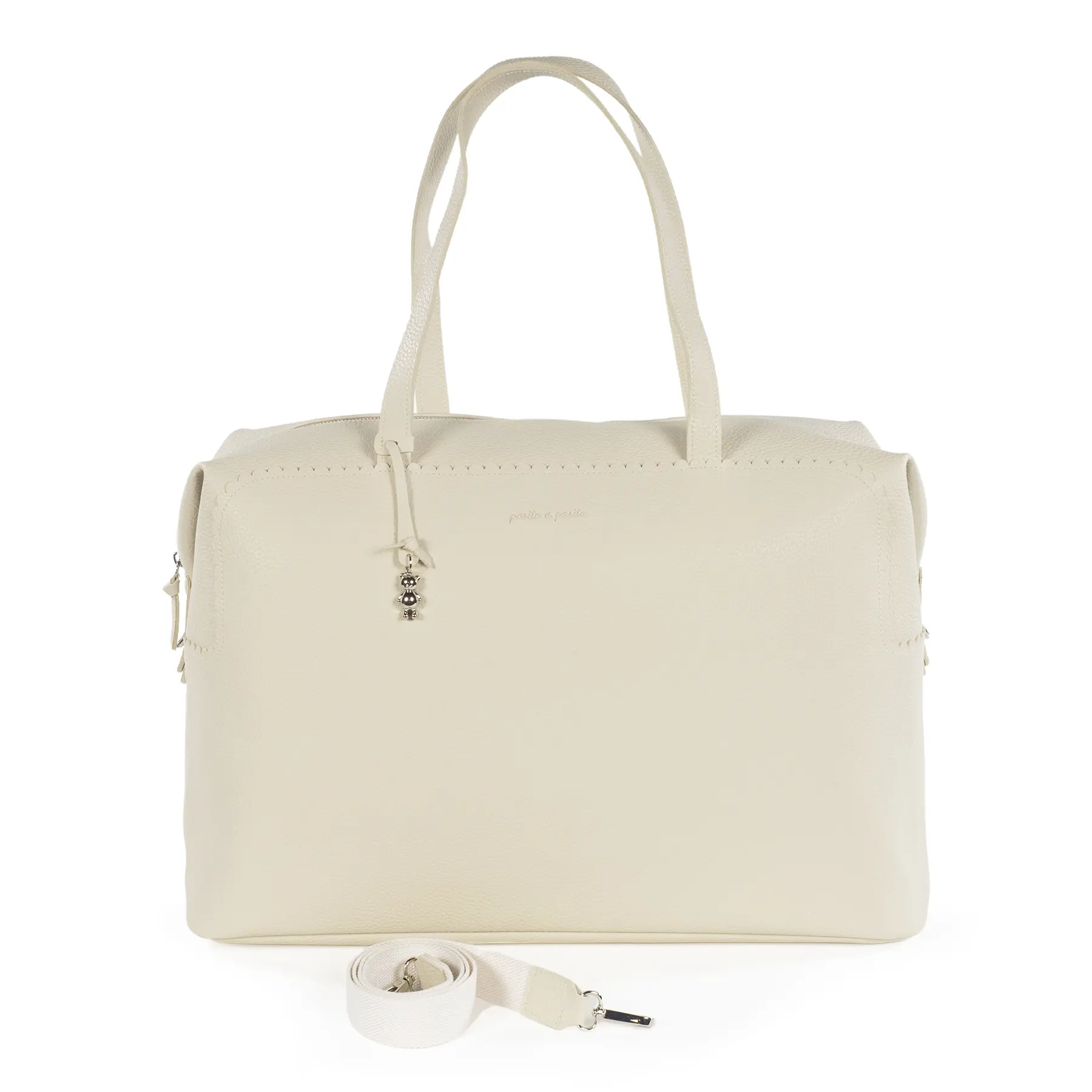 Descubre la perfecta combinación de estilo y practicidad con nuestra Bolsa XL Icon Cream de polipiel. Esta bolsa, confeccionada con polipiel de alta calidad, se destaca por su diseño moderno y espacioso, ideal para papas que buscan un accesorio versátil para el día a día. Bolsa de gran capacidad con múltiples bolsillos para poder tener todo ordenado en tus salidas o viajes con tu bebé. Incluye varios bolsillos internos para una mejor organización. Doble asa superior para llevarla cómodamente en la mano y una correa ajustable y desmontable para usarla al hombro o cruzada. Fabricada con materiales de gran calidad, libres de colorantes azoicos, ftalatos y sustancias nocivas para la salud. Además se puede lavar a mano o a máquina a temperatura de hasta 30º. Los productos para bebé de Pasito a Pasito cuentan con un diseño muy diferente a todas las demás. Sus colecciones se caracterizan por el trabajo al detallada, pensadas siempre desde un punto de vista práctico. Utilizan materiales de primera calidad para remarcar la elegancia y la armonía en cada una de sus piezas. Nuestros modelos son exclusivos y de estilo inconfundible, pensados en madres actuales que gozan de buen gusto y que aprecian los detalles tanto como nosotros. Especificaciones: Materiales: Eco-leather. Color: Beige. Medidas: 50X35X25 cm