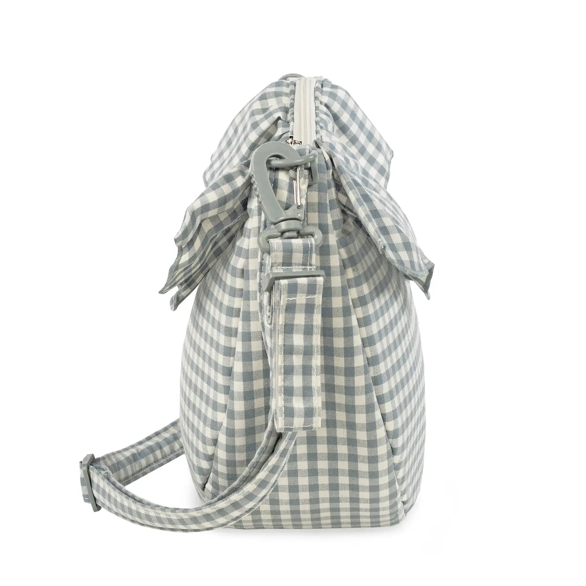 Funcional, ligera y con mucho estilo: la bolsa ideal para paseos con tu bebé. La bolsa tipo góndola con correa cruzada de la colección Praliné Vichy Matcha de Walking Mum es la opción perfecta para quienes buscan una bolsa maternal ligera, compacta y con gran capacidad de organización. Su diseño curvado tipo góndola, es perfecto para llevar como bolsa bandolera. Aporta un toque moderno ideal para llevar tanto colgada al hombro como sujeta al carrito del bebé. Fabricada con tratamiento water resistant, esta bolsa es resistente, práctica y fácil de limpiar. Incluye enganches universales para carrito de bebé. El interior cuenta con 3 bolsillos: 1 bolsillo lateral térmico, ideal para biberones o botellas y 2 bolsillos adicionales para organizar pañales, toallitas, llaves o móvil. Cierre con cremallera superior para mayor seguridad. Correa larga ajustable para usar como bolso cruzado o al hombro. Una opción versátil y con mucho estilo para el día a día. La bolsa crossbody Gala Cerise de Walking Mum combina diseño, practicidad y comodidad en una pieza única. De fácil limpieza a mano o a máquina a 30 °C. Walking Mum protege a tu bebé utilizando los mejores tejidos, libres de colorantes azoicos y sustancias nocivas para la salud. Nuestra colección Walking Mum está diseñada con un particular sello de estilo urbano y moderno que no pasa desapercibido, para vestir diferente los paseos con tu bebé. Las bolsas de maternidad de esta línea son más sport y prácticas, especialmente pensadas en mamás y papás modernos que aprecian los diseños más actuales y en tendencia sin dejar de lado la calidad y la funcionalidad de los accesorios que complementan y hacen más cómodos todos los paseos con sus bebés. Especificaciones: Materiales: 65% algodón/35% poliéster con tratamiento waterpfoof. Medidas: 32x22x12 cm.