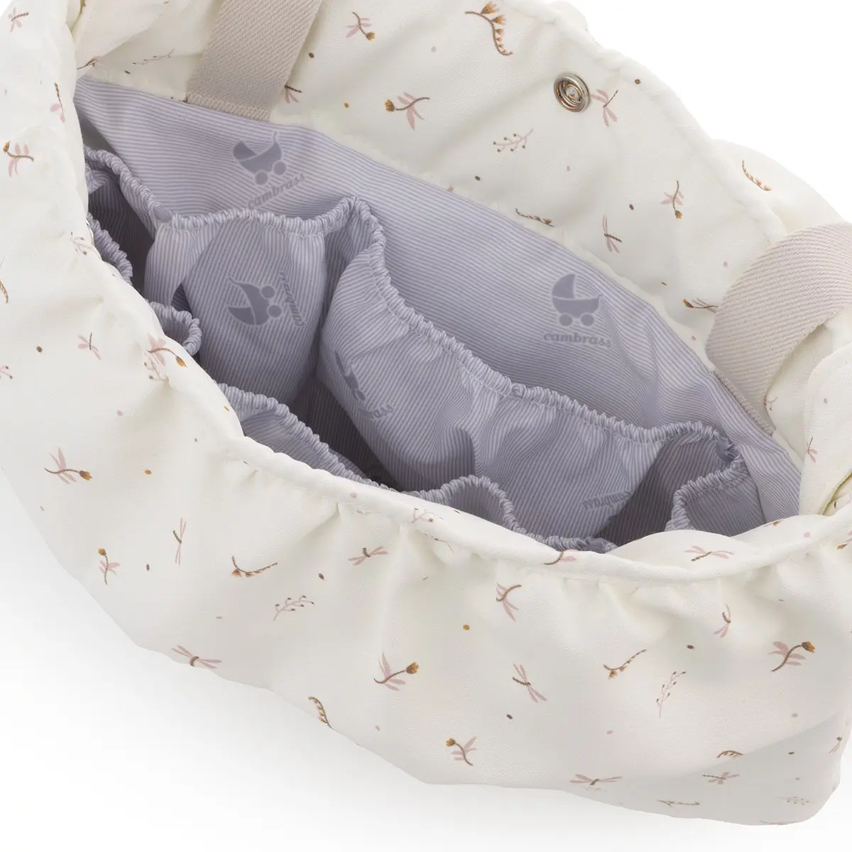 El bolso maternal de Cambrass es un accesorio indispensable para la maternidad y la crianza. Su diseño amplio y funcional permite organizar y transportar de forma cómoda todo lo que el bebé necesita dentro y fuera de casa: ropa de cambio, pañales, biberones, toallitas y accesorios personales de la mamá.