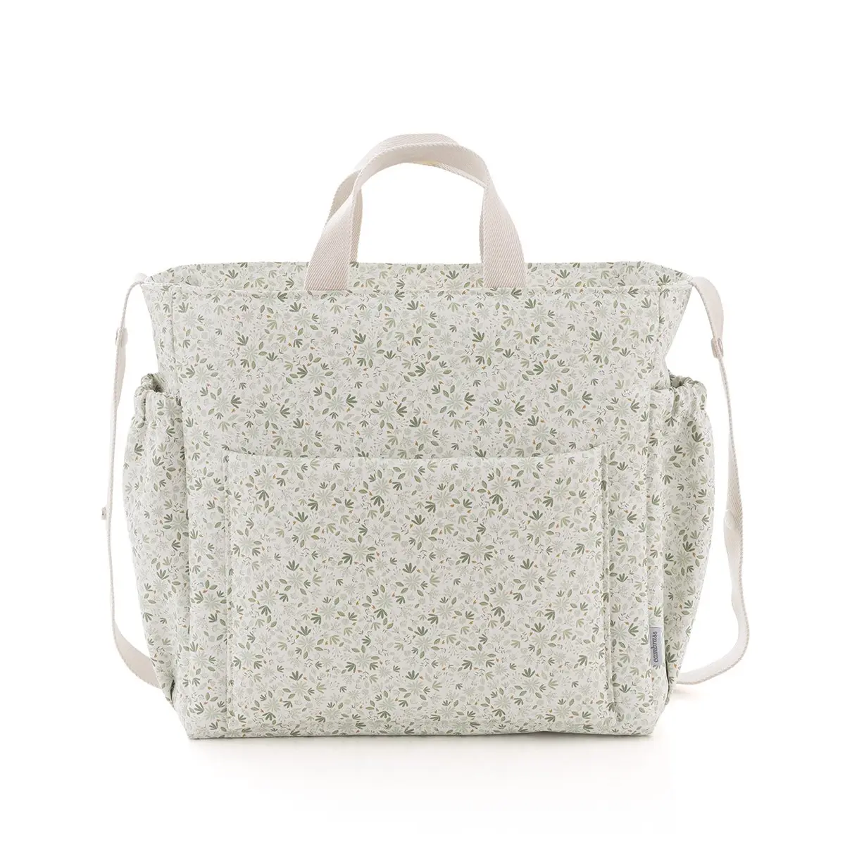 El Bolso Maternal Pack de Cambrass de gran amplitud con capacidad para guardar todo lo que necesitas para tu bebe. Su sistema de asas cortas lo hace útil tanto como bolso de mano o maletín así como de bandolera o incluso para el carro, ya que el asa larga dispone de clips para poder colgar del cochecito. El tejido interior (resinado) con el que está confeccionado el bolso cuenta con un acabado impermeable que sumado a su base rígida aporta estabilidad evitando que pierda su forma tanto lleno como vacío e incluso después del lavado. Este bolso cuenta con prácticos bolsillos interiores y exteriores para una perfecta organización de los accesorios. El cierre del bolso es con cremallera YKK de larga duración.