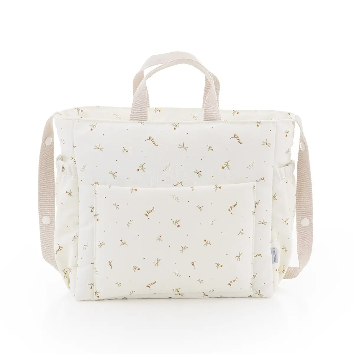 El Bolso Maternal Pack de Cambrass de gran amplitud con capacidad para guardar todo lo que necesitas para tu bebe. Su sistema de asas cortas lo hace útil tanto como bolso de mano o maletín así como de bandolera o incluso para el carro, ya que el asa larga dispone de clips para poder colgar del cochecito. El tejido interior (resinado) con el que está confeccionado el bolso cuenta con un acabado impermeable que sumado a su base rígida aporta estabilidad evitando que pierda su forma tanto lleno como vacío e incluso después del lavado. Este bolso cuenta con prácticos bolsillos interiores y exteriores para una perfecta organización de los accesorios. El cierre del bolso es con cremallera YKK de larga duración.