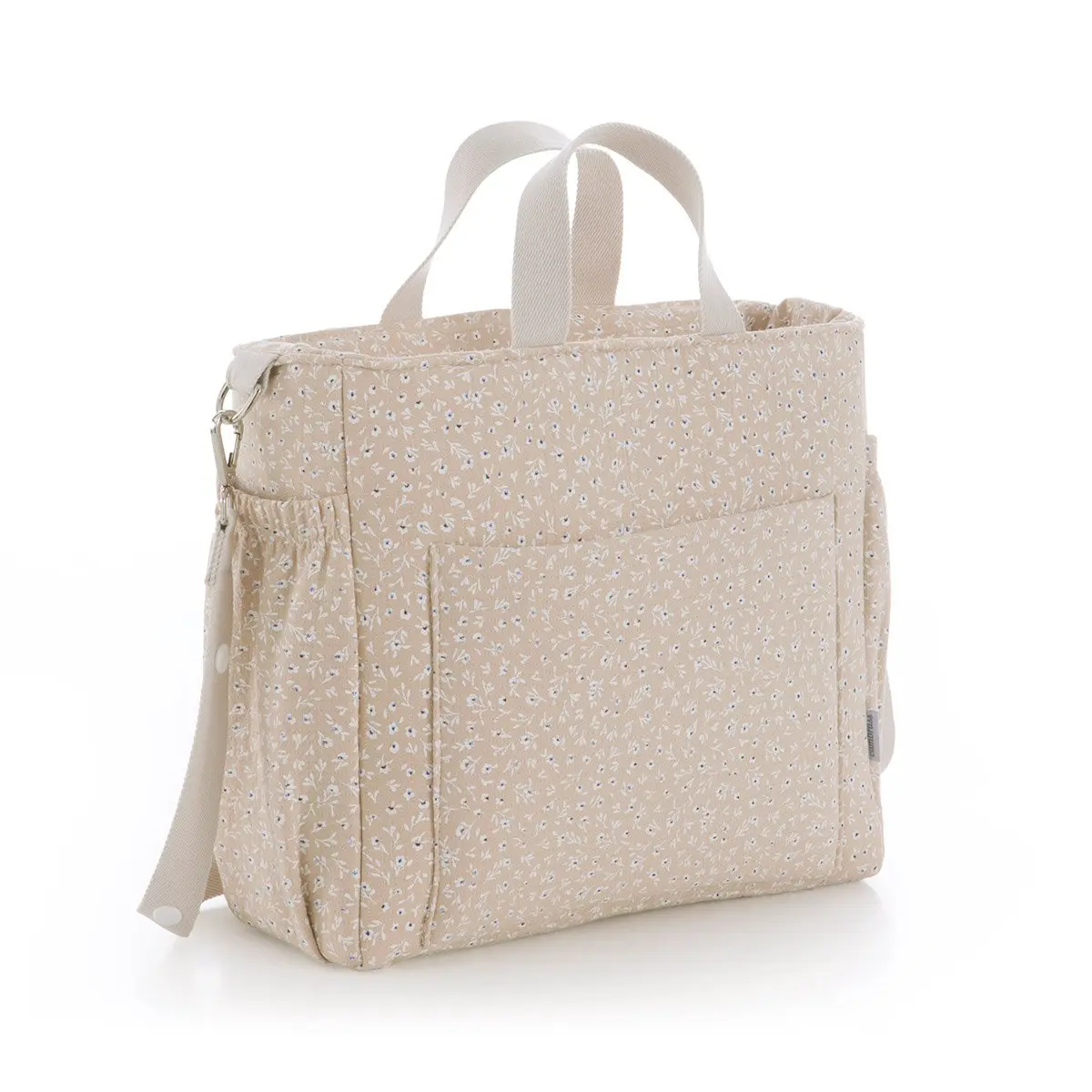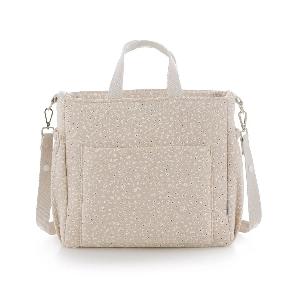 El Bolso Maternal Pack de Cambrass de gran amplitud con capacidad para guardar todo lo que necesitas para tu bebe. Su sistema de asas cortas lo hace útil tanto como bolso de mano o maletín así como de bandolera o incluso para el carro, ya que el asa larga dispone de clips para poder colgar del cochecito. El tejido interior (resinado) con el que está confeccionado el bolso cuenta con un acabado impermeable que sumado a su base rígida aporta estabilidad evitando que pierda su forma tanto lleno como vacío e incluso después del lavado. Este bolso cuenta con prácticos bolsillos interiores y exteriores para una perfecta organización de los accesorios. El cierre del bolso es con cremallera YKK de larga duración.