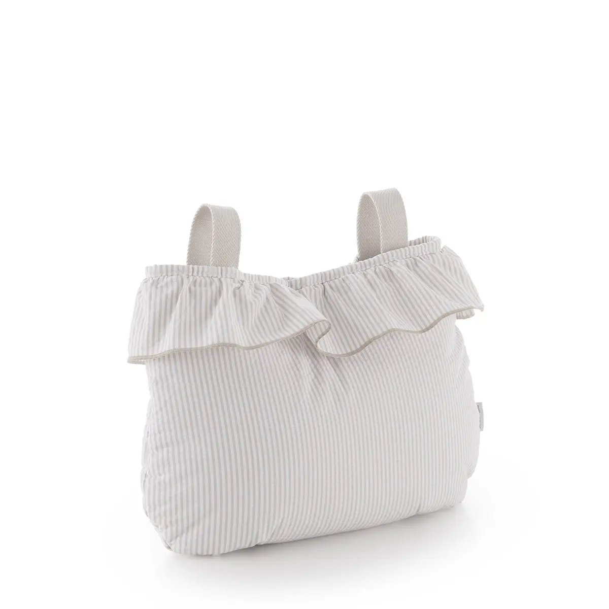 Bolso organizador estilo boho para silla de paseo, diseñado para mantener organizados y siempre a mano los imprescindibles del bebé durante el paseo.