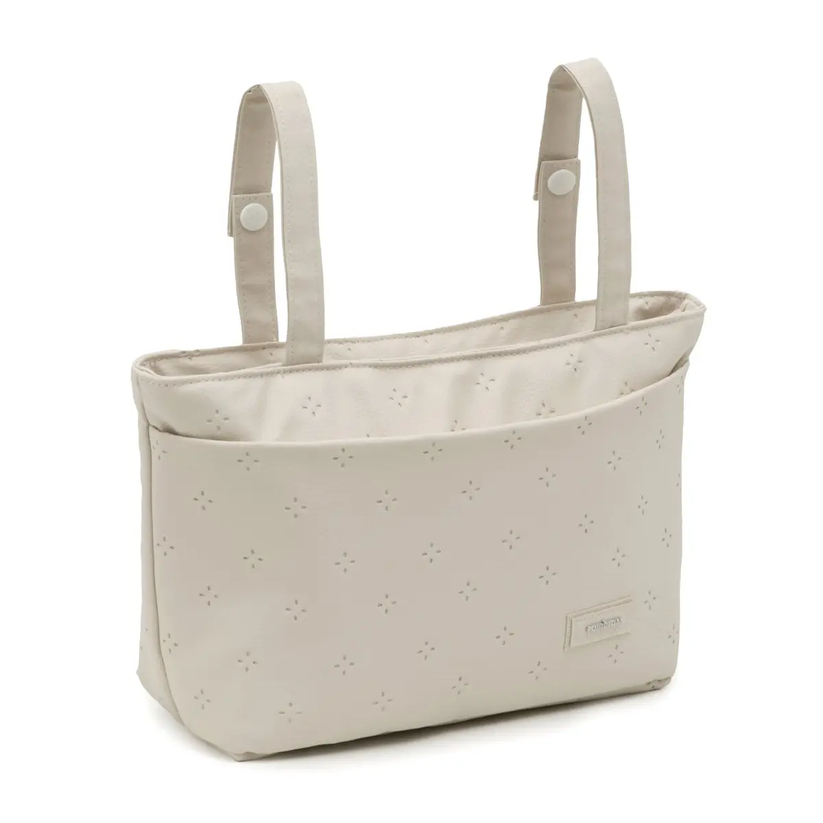 El bolso organizador es perfecto para colgar del carrito, ya que está dispuesto de 2 asas cortas. Muy cómodo para llevar todos los complementos que necesites para el bebé durante el paseo, ya que tanto en su interior como exterior dispone de bolsillos para colocar ordenadamente todos los complementos y práctico por su tamaño compacto.