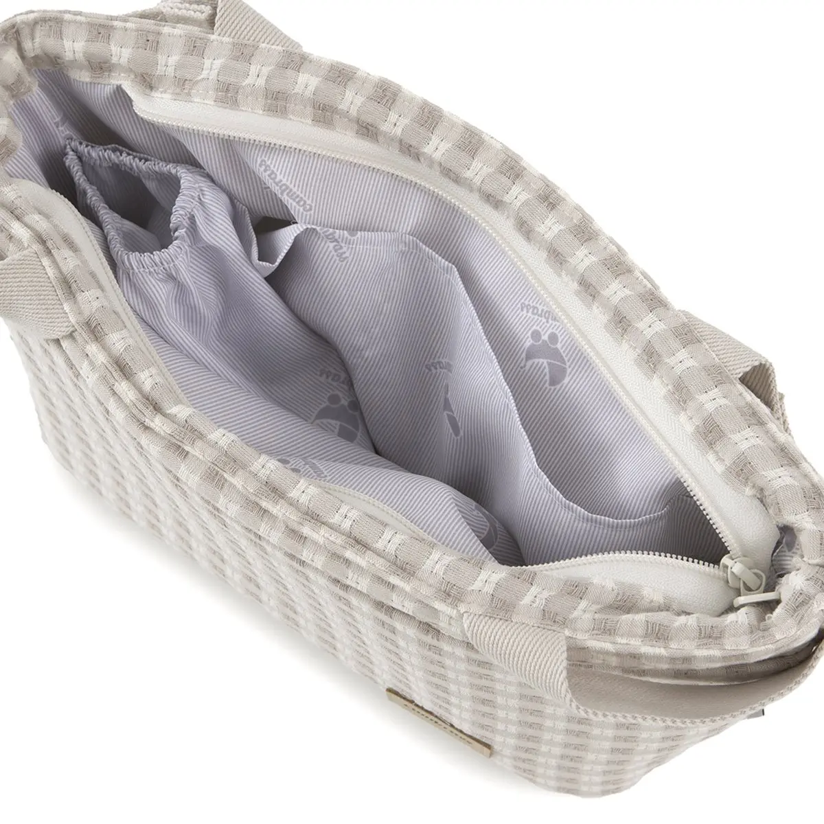El bolso organizador es perfecto para colgar del carrito, ya que está dispuesto de 2 asas cortas. Muy cómodo para llevar todos los complementos que necesites para el bebé durante el paseo, ya que tanto en su interior como exterior dispone de bolsillos para colocar ordenadamente todos los complementos y práctico por su tamaño compacto.