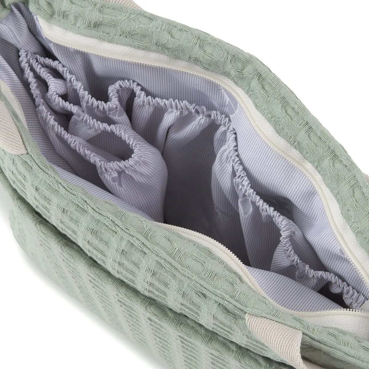 Un bolso organizador con asas cortas es ideal para colgar del carrito del bebé. Esto te permite tener fácil acceso a todos los complementos que necesites durante el paseo. Además, su diseño con bolsillos tanto en el interior como en el exterior te brinda la posibilidad de organizar todos los accesorios de manera ordenada. Esto es especialmente útil cuando se trata de artículos pequeños que podrían perderse en un bolso más grande. En general, un bolso organizador con estas características es una excelente opción para mantener todo lo necesario para el bebé al alcance de la mano durante los paseos.