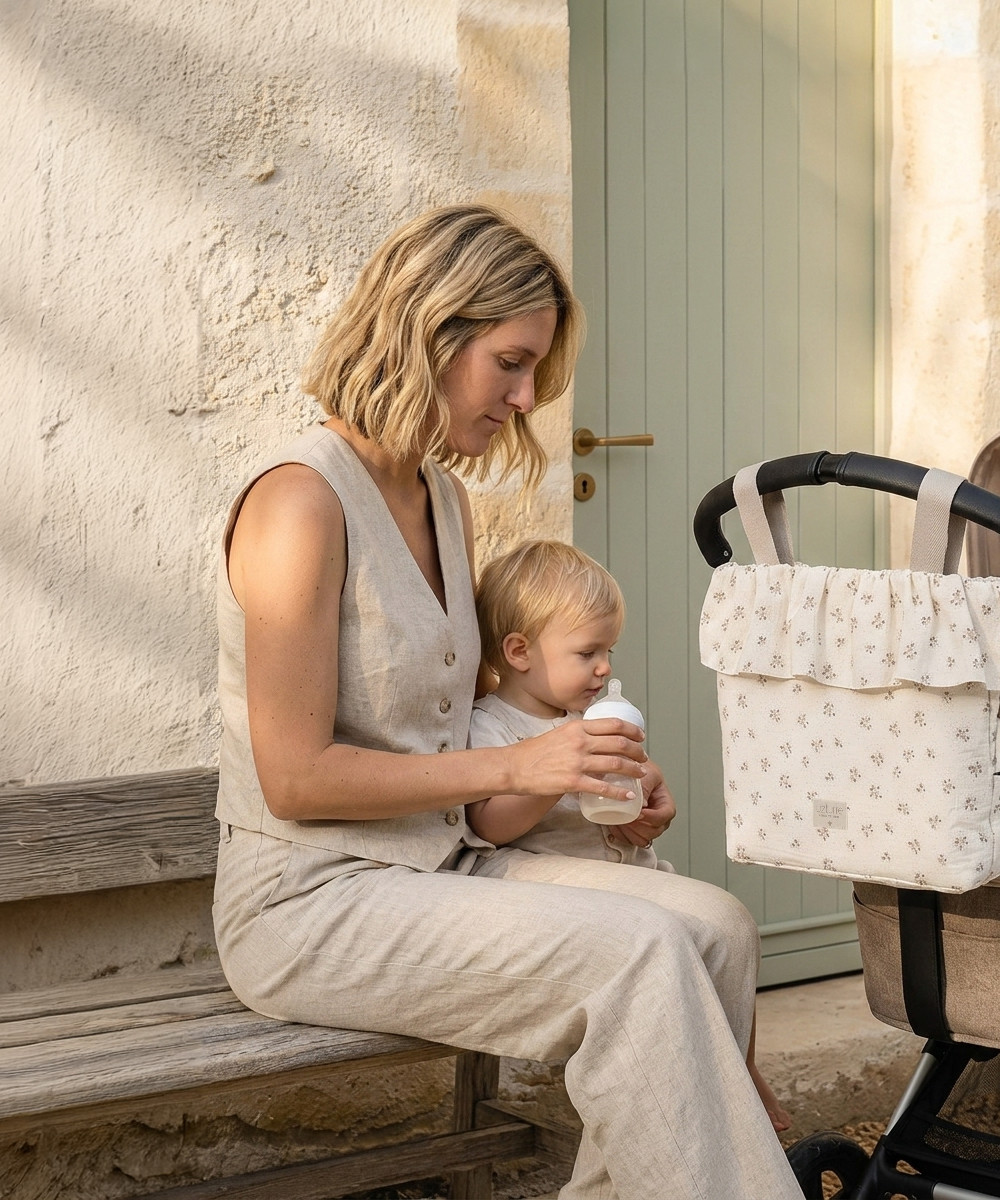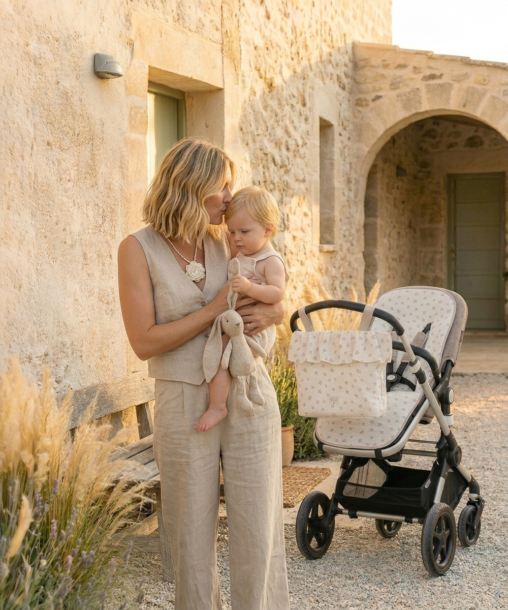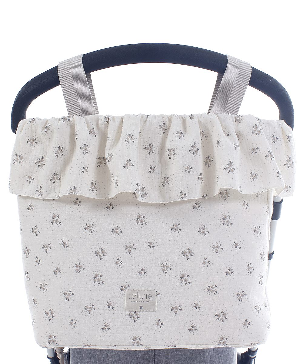 La Talega Volante Graciela de Uzturre es un bolso para cochecito que combina diseño elegante y funcionalidad para el día a día con tu bebé. Destaca por su detalle de volante decorativo y acabado refinado, aportando un estilo sofisticado que combina con cualquier cochecito.