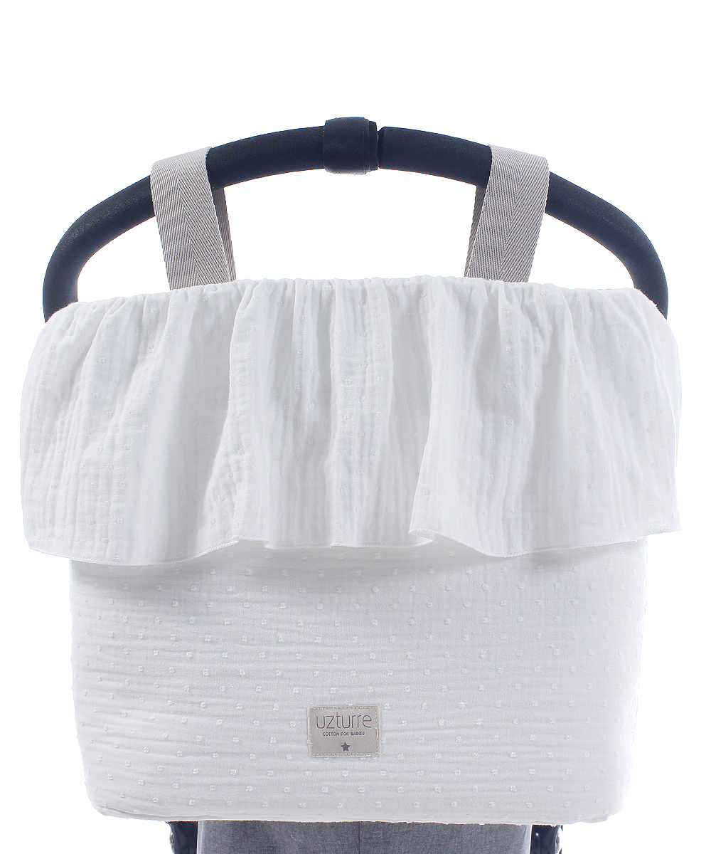 La Talega Volante Luisa de Uzturre es un bolso para cochecito que combina diseño elegante y funcionalidad para el día a día con tu bebé. Destaca por su detalle de volante decorativo y acabado refinado, aportando un estilo sofisticado que combina con cualquier cochecito.