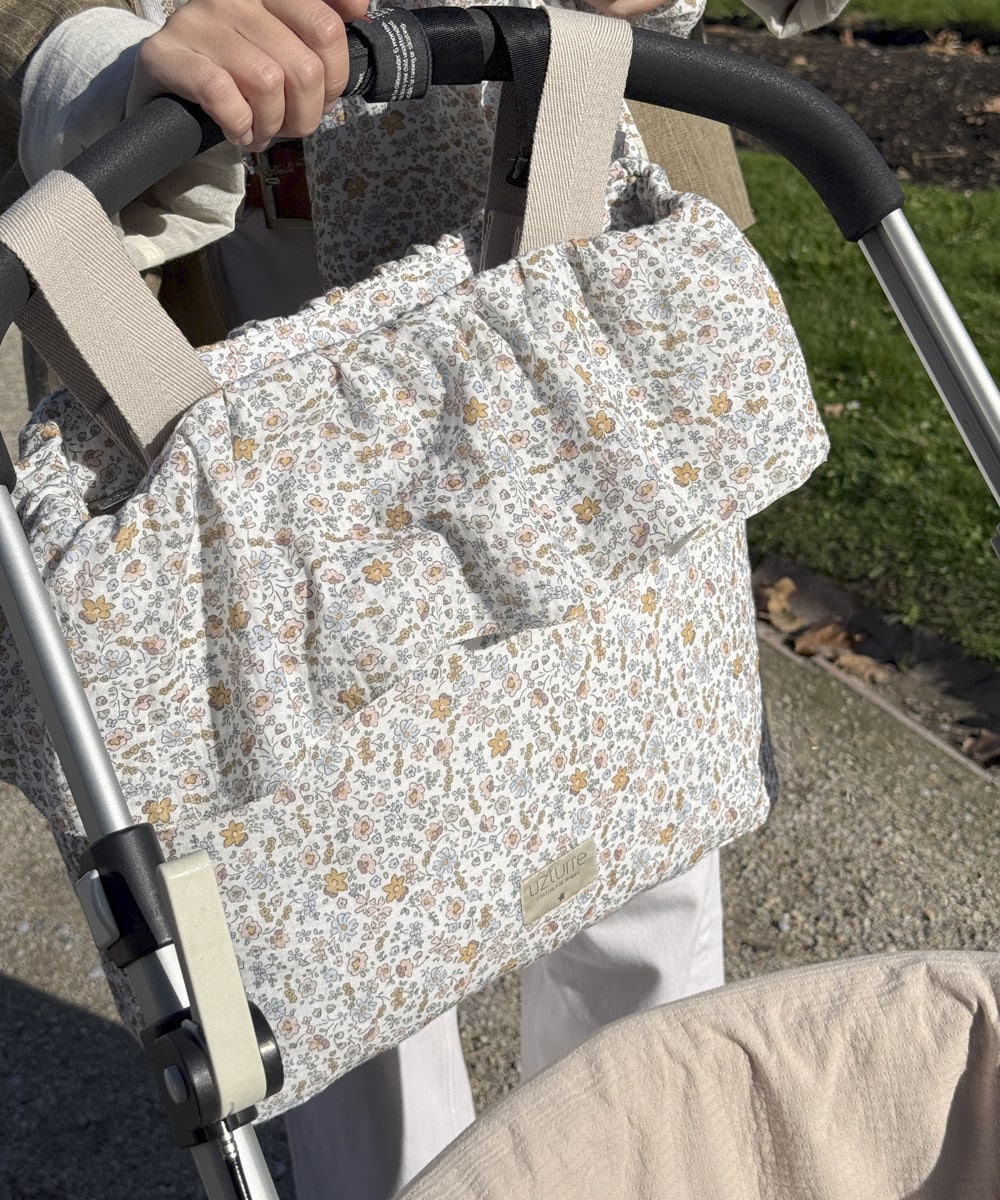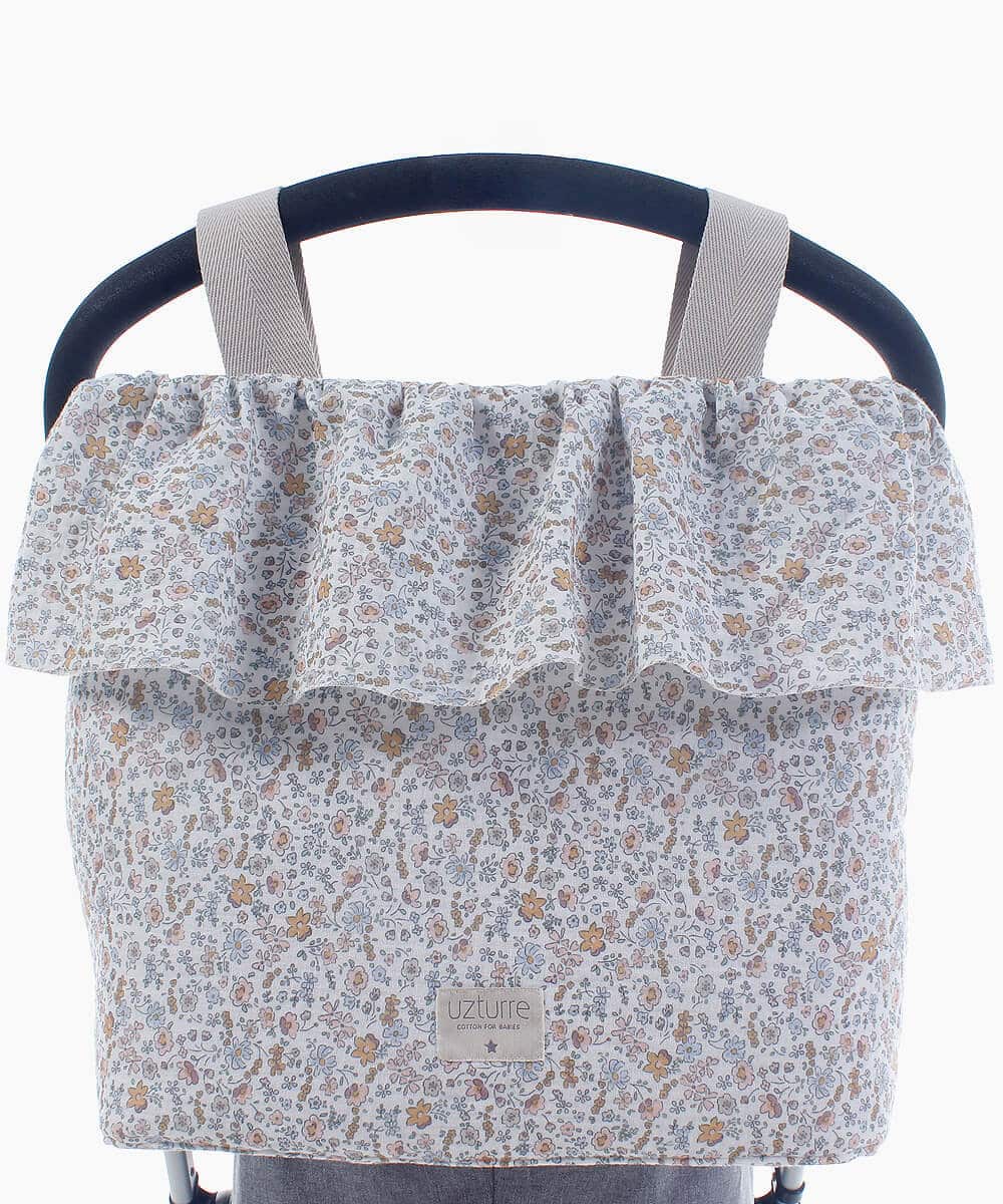 La Talega Volante Marga de Uzturre es un bolso para cochecito que combina estilo y funcionalidad. Su diseño destaca por el detalle de volante decorativo, ofreciendo un look elegante y sofisticado para complementar cualquier cochecito.