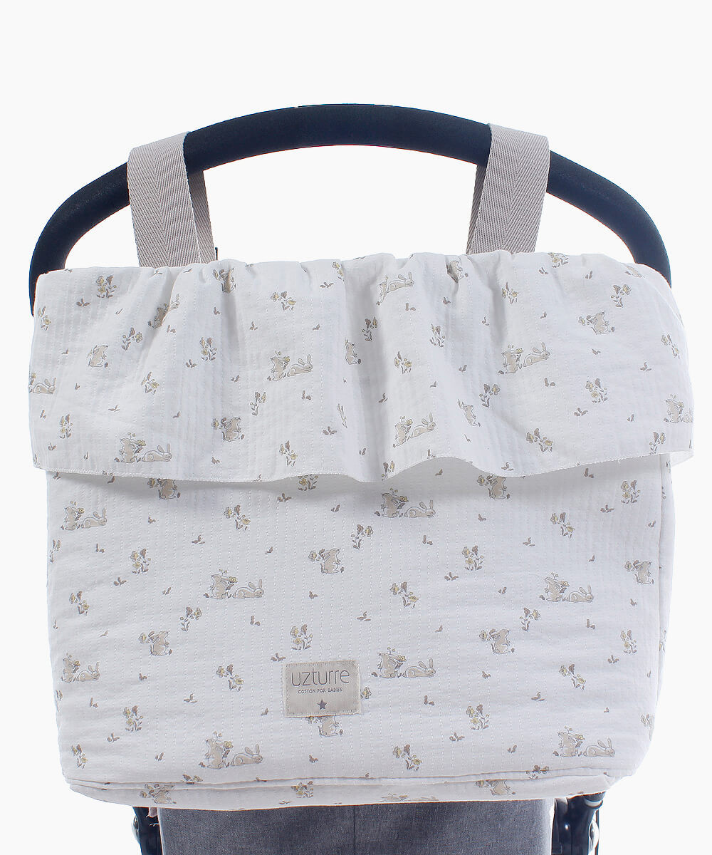 La Talega Volante Pablo de Uzturre es un bolso para cochecito que combina diseño elegante y funcionalidad para el día a día con tu bebé. Destaca por su detalle de volante decorativo y acabado refinado, aportando un estilo sofisticado que combina con cualquier cochecito.