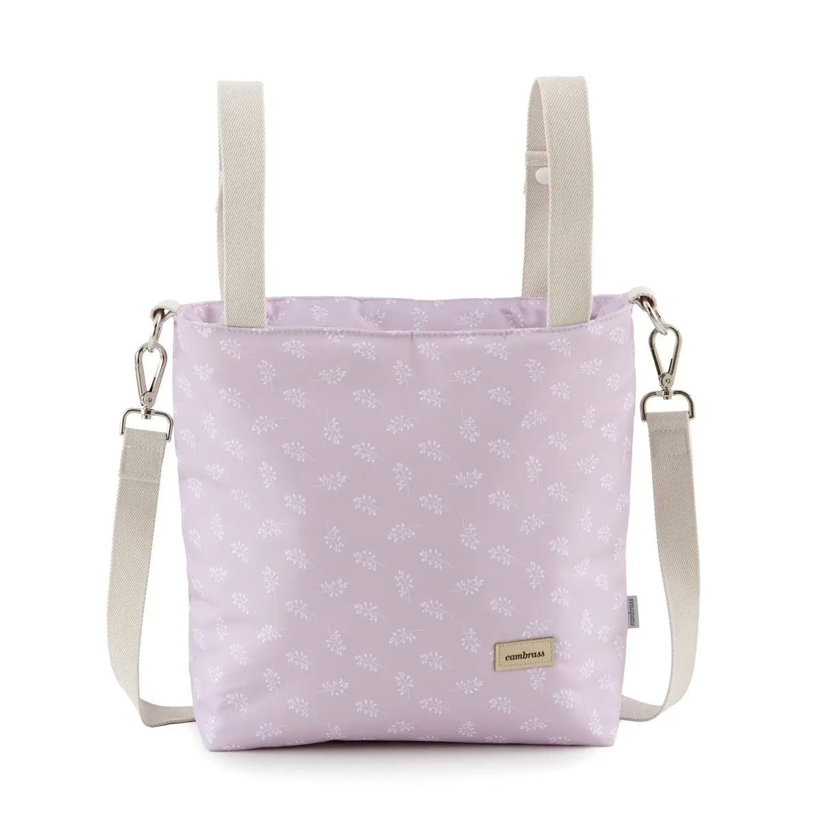 El bolso Talega de Cambrass, es un bolso con unas medidas perfectas tanto para transportar la mamá como para colgar al carro, lleva 2 tipo de asas, bandolera y para el carro. Made in Spain.