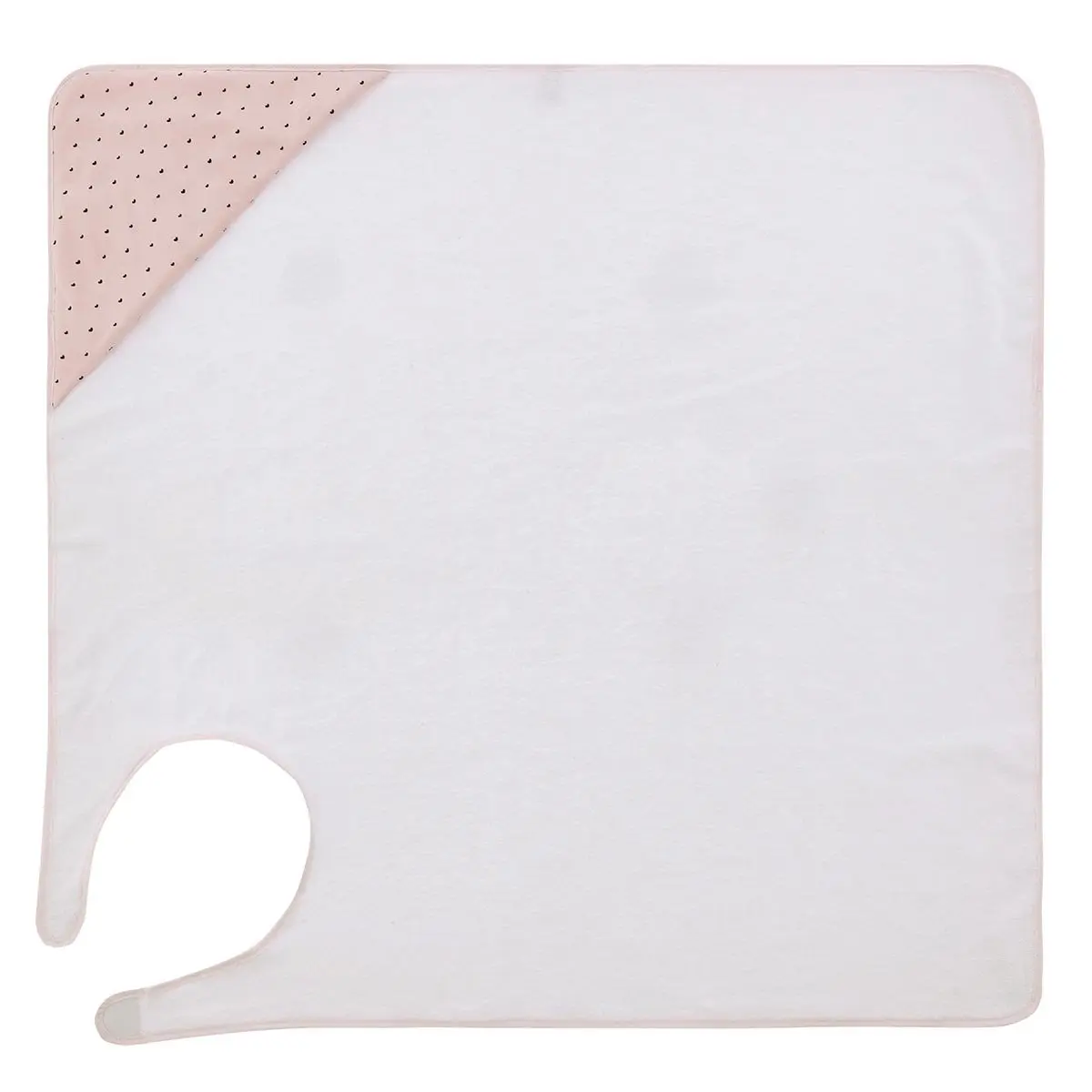 La capa de baño delantal está diseñada para abrocharse alrededor del cuello y así tener las manos libres para sacar al bebé de la bañera y arroparlo de manera segura.