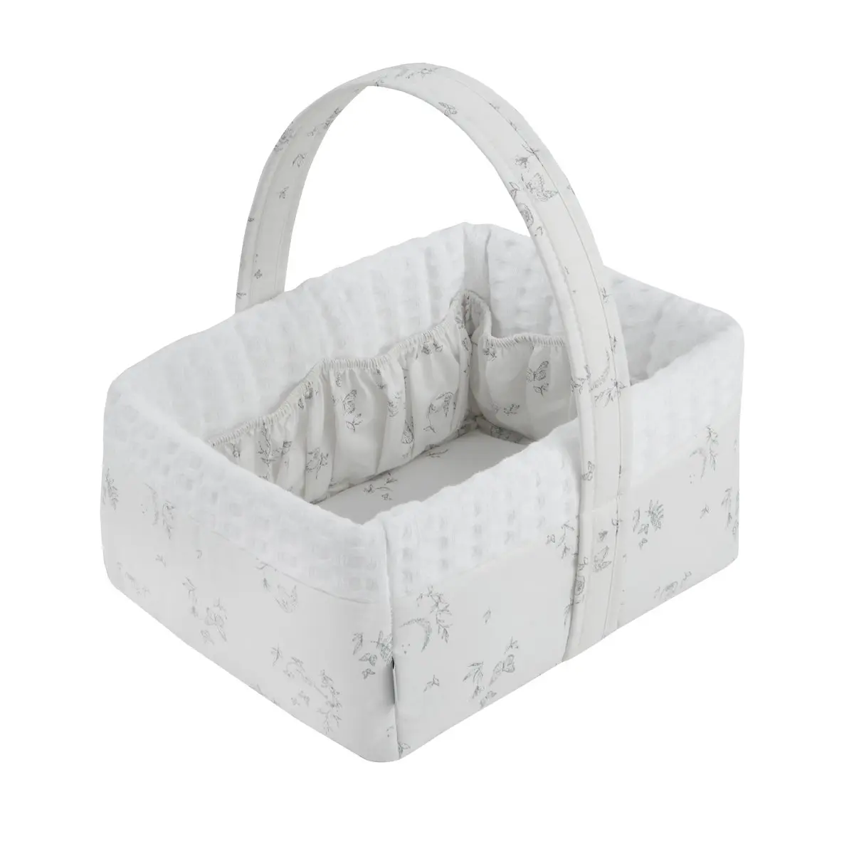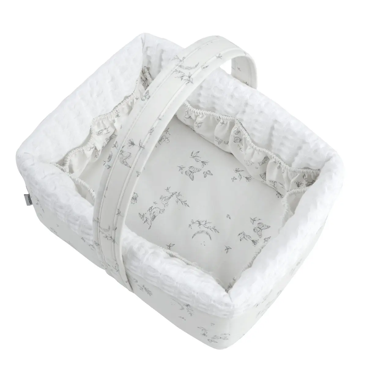 La cesta canastilla acolchada de Cambrass sirve para guardar los artículos de higiene del bebé. Fabricado en España.