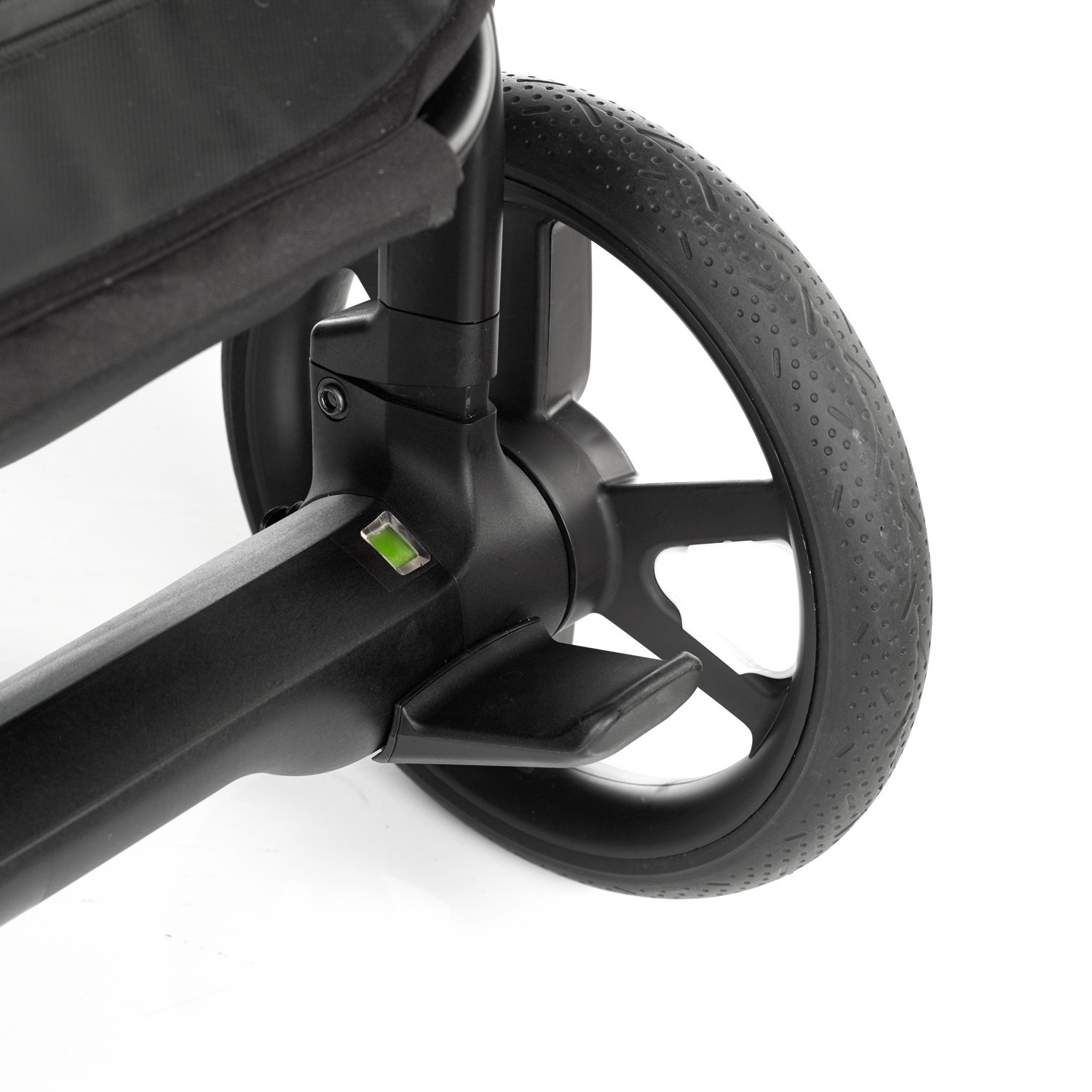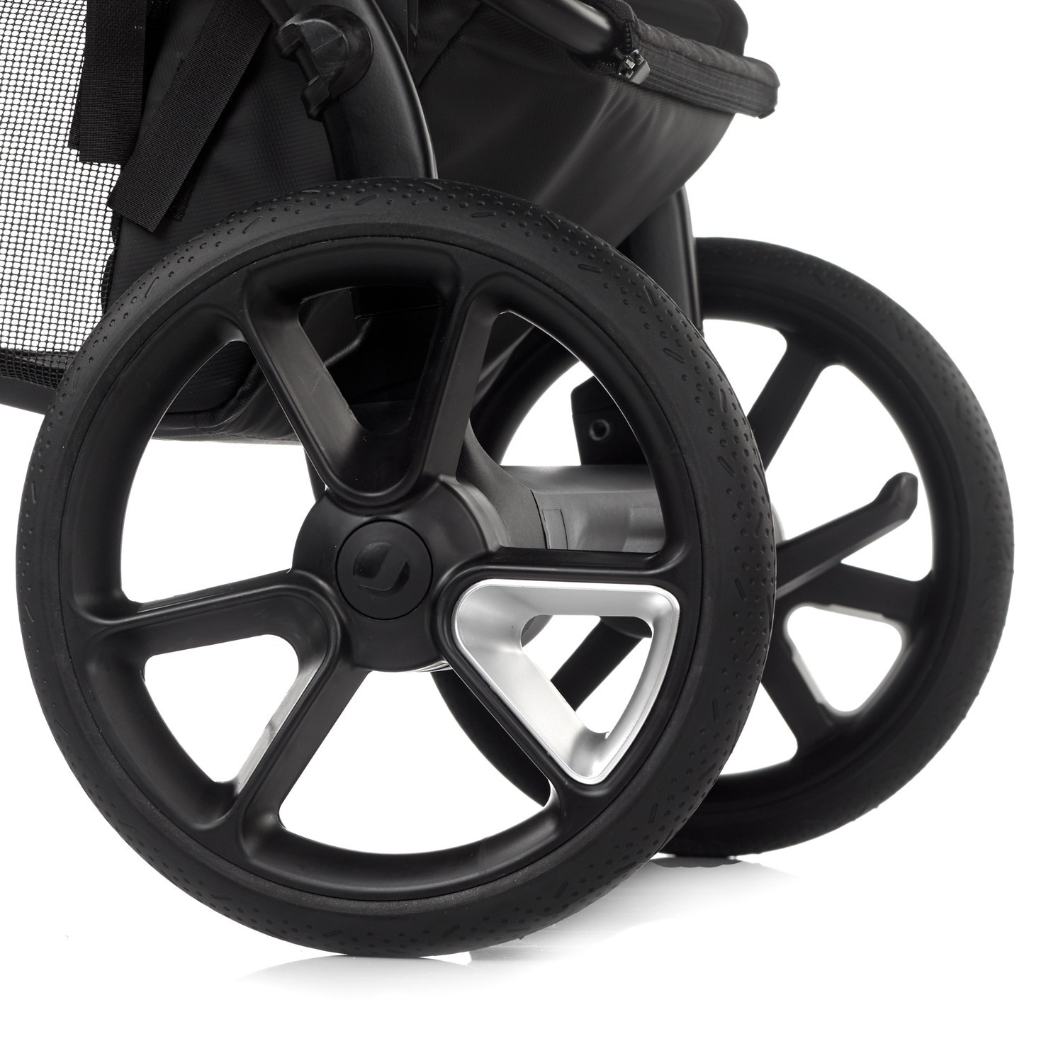 Las ruedas delanteras de 21 cm y traseras de 25 cm, junto con la suspensión independiente en las cuatro ruedas, aseguran una rodadura suave incluso en aceras irregulares o adoquinadas.