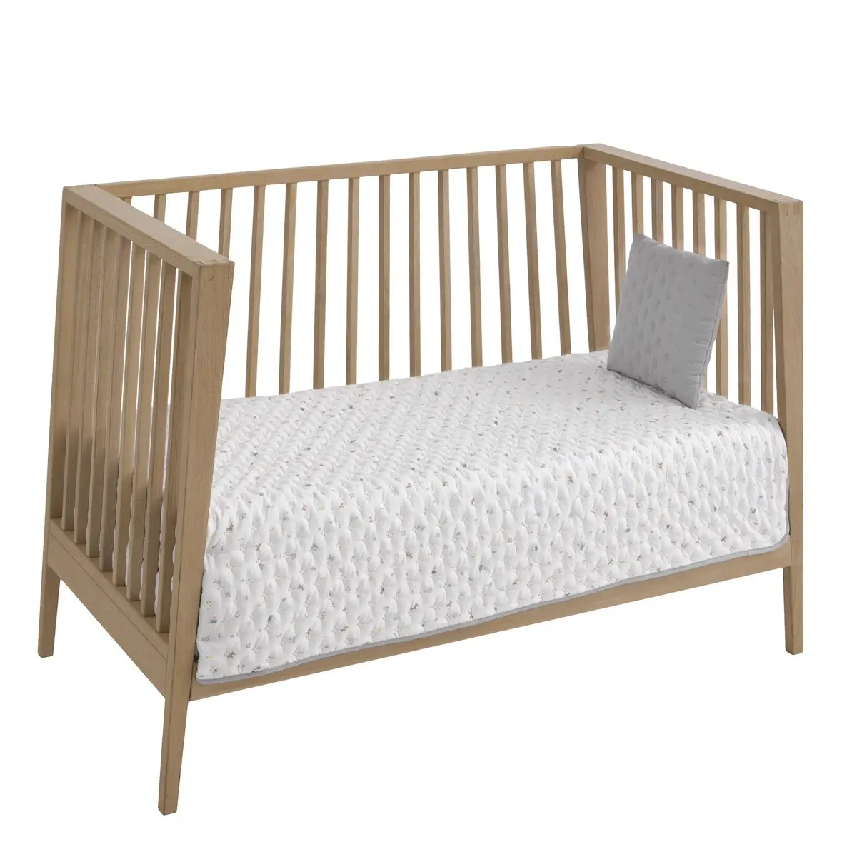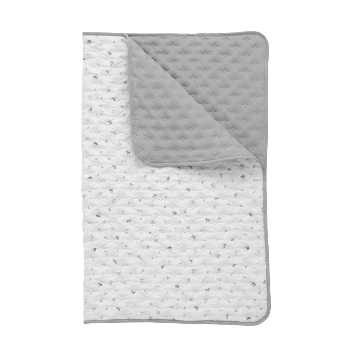La Colcha Bouti es reversible, confortable y moderna. Se confecciona en 2 tamaños, 100×135 cm. para cunas y 80x80cm. se adapta para minicuna y carro. También puede ser utilizada como manta de juegos. Fabricada en España. Por Cambrass.