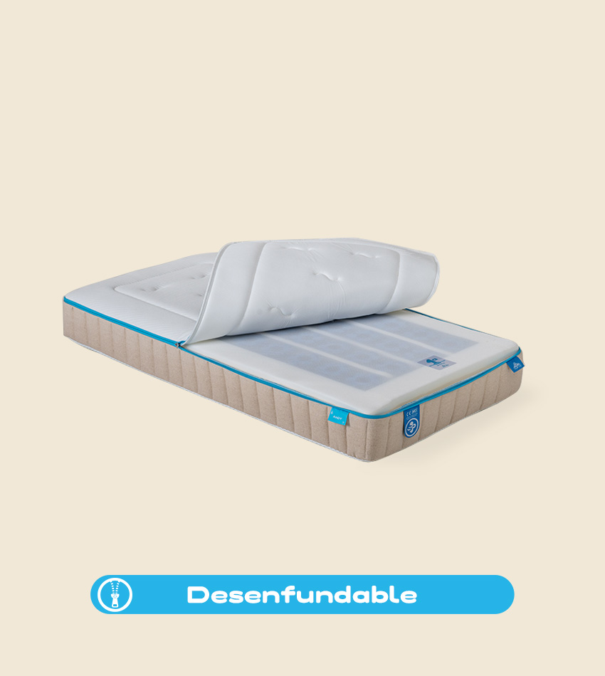 Funda desenfundable y lavable en lavadora (30 °C), lo que facilita la higiene diaria y alarga la vida útil del colchón.
