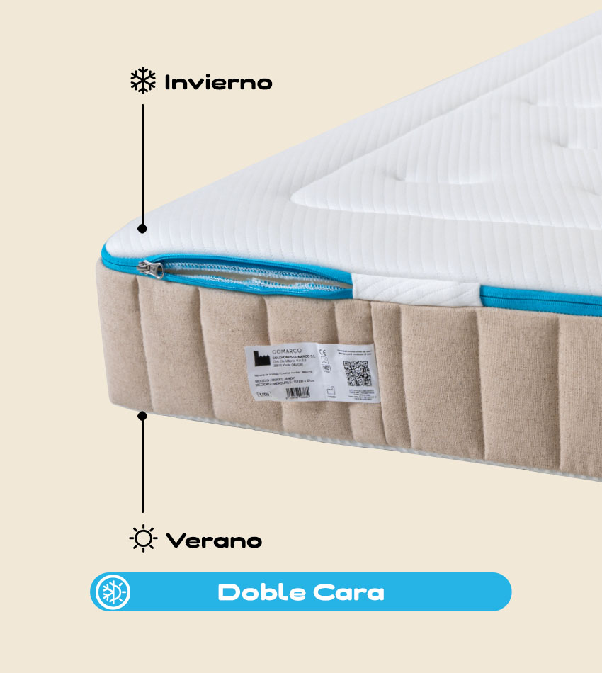 Doble cara verano/invierno para adaptarse al clima: una cara más cálida y otra que disipa el calor.