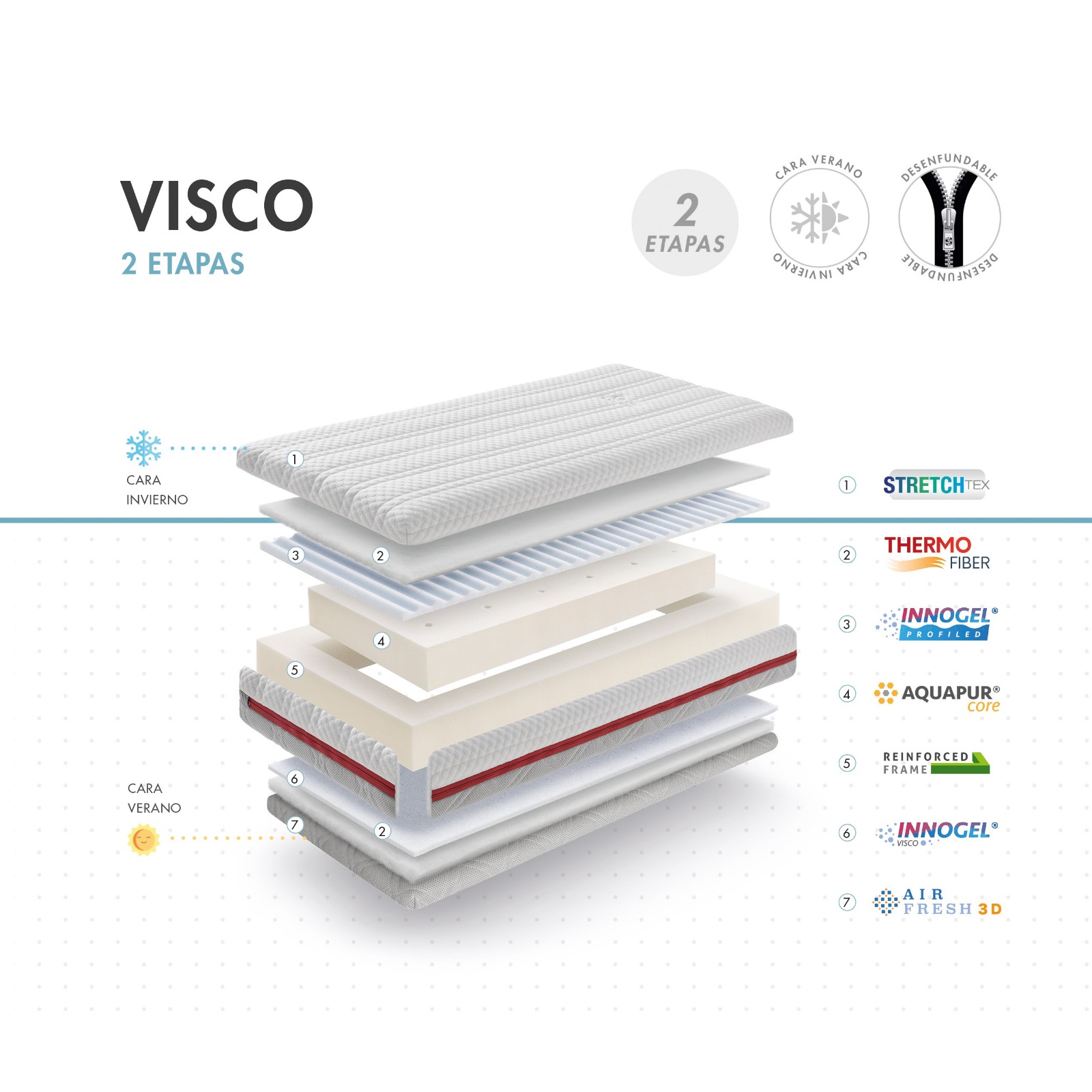 Visco Innogel®: más fresca que la visco común. Gracias al gel retrasa la absorción de calor. Alivia al bebé y reduce su agitación durante el sueño.