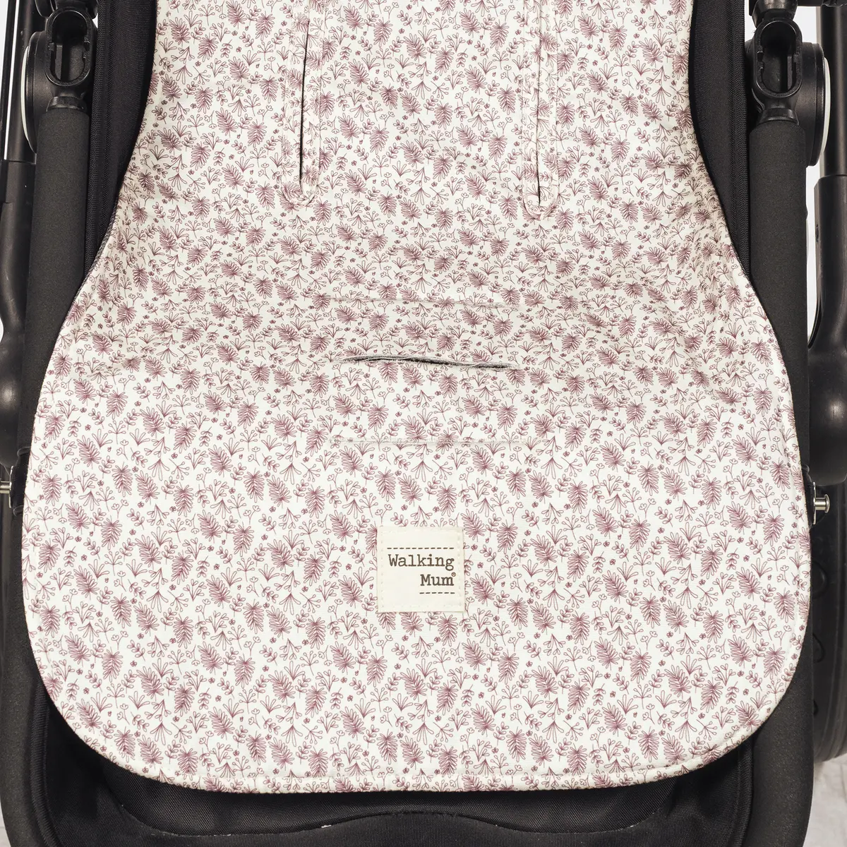 La colchoneta para silla de paseo Gala Cerise con estampado floral está fabricado con un tejido exterior 100% algodón es el forro ideal para cubrir el asiento de tu bebé durante el verano, protegiendo su piel de las rozaduras e irritaciones del calor y además mantienes el tapizado original como nuevo. Está elaborada con un material transpirable que ayuda a prevenir la sudoración excesiva del bebé y protege la sillita haciendo el paseo más confortable. Su esquema de uso universal te permite adaptar el colchón a la mayoría de las sillas de paseo, y dispone de varias aperturas (ojales) y ajustes con los que puedes colocarla de forma muy fácil en el asiento del coche. Gran calidad y mucho estilo. Fabricado en materiales resistentes y de fácil limpieza a mano o a máquina a 30 °C. Walking Mum protege a tu bebé utilizando los mejores tejidos, libres de colorantes azoicos y sustancias nocivas para la salud. Nuestra colección Walking Mum está diseñada con un particular sello de estilo urbano y moderno que no pasa desapercibido, para vestir diferente los paseos con tu bebé. Los accesorios de maternidad de esta línea son más sport y prácticos, especialmente pensados en mamás y papás modernos que aprecian los diseños más actuales y en tendencia sin dejar de lado la calidad y la funcionalidad de los productos que complementan y hacen más cómodos todos los paseos con sus bebés. Especificaciones: Materiales: 100% Algodón. Medidas: Universal.