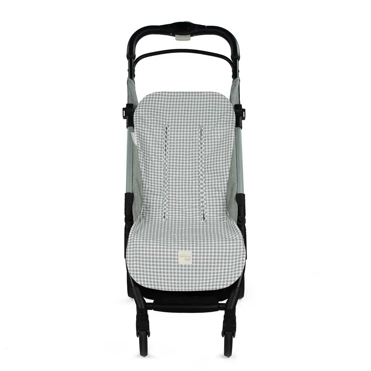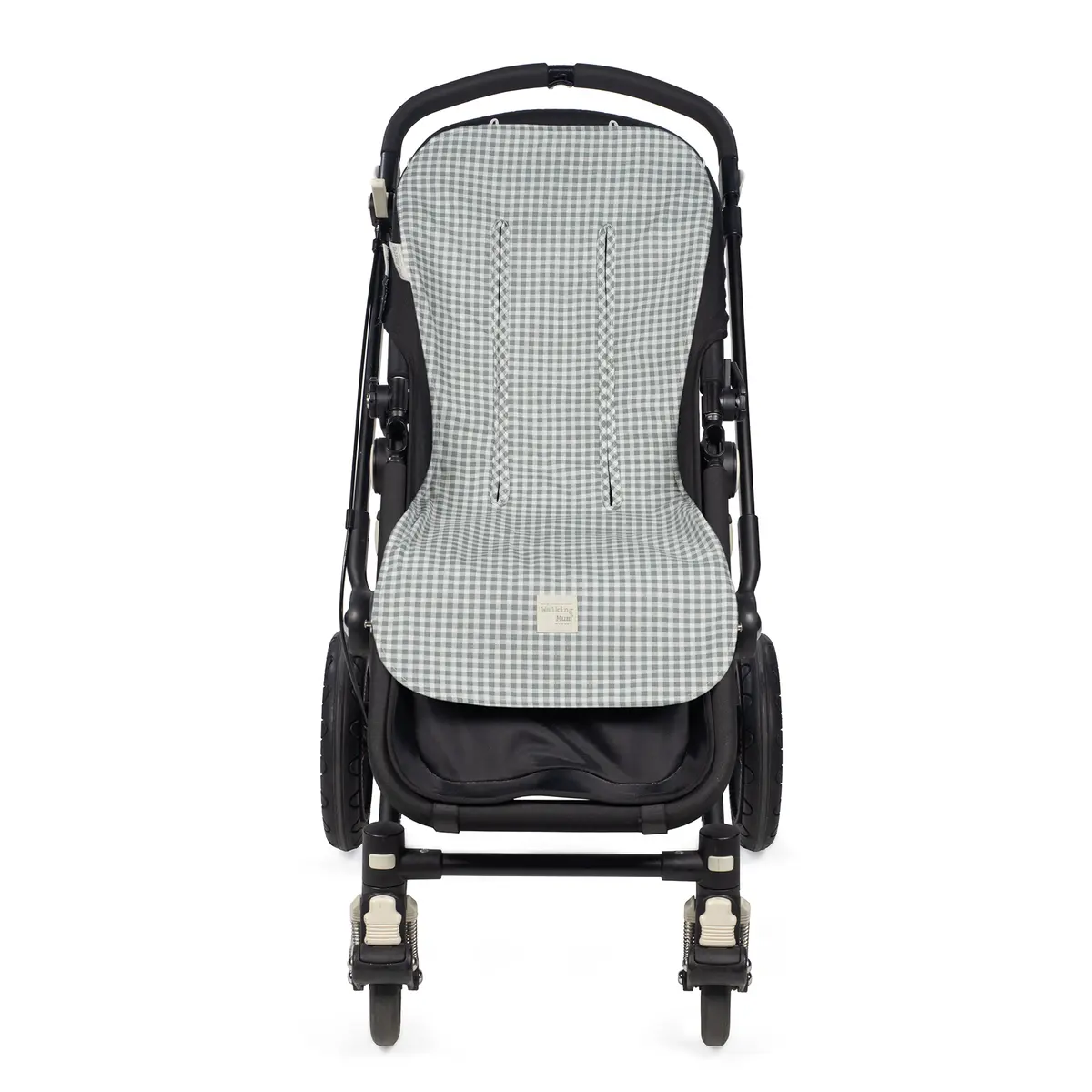 La colchoneta para silla de paseo I love vichy verde es el forro ideal para cubrir el asiento de tu bebé durante el verano, protegiendo su piel de las rozaduras e irritaciones del calor y además mantienes el tapizado original como nuevo. Está elaborada con un material transpirable que ayuda a prevenir la sudoración excesiva del bebé y protege la sillita haciendo el paseo más confortable. Su esquema de uso universal te permite adaptar el colchón a la mayoría de las sillas de paseo, y dispone de varias aperturas (ojales) y ajustes con los que puedes colocarla de forma muy fácil en el asiento del coche. Gran calidad y mucho estilo. Fabricado en materiales resistentes y de fácil limpieza a mano o a máquina a 30 °C. Walking Mum protege a tu bebé utilizando los mejores tejidos, libres de colorantes azoicos y sustancias nocivas para la salud. Nuestra colección Walking Mum está diseñada con un particular sello de estilo urbano y moderno que no pasa desapercibido, para vestir diferente los paseos con tu bebé. Los accesorios de maternidad de esta línea son más sport y prácticos, especialmente pensados en mamás y papás modernos que aprecian los diseños más actuales y en tendencia sin dejar de lado la calidad y la funcionalidad de los productos que complementan y hacen más cómodos todos los paseos con sus bebés. Especificaciones: Materiales: 100% Algodón. Color: Verde. Medidas: Universal.