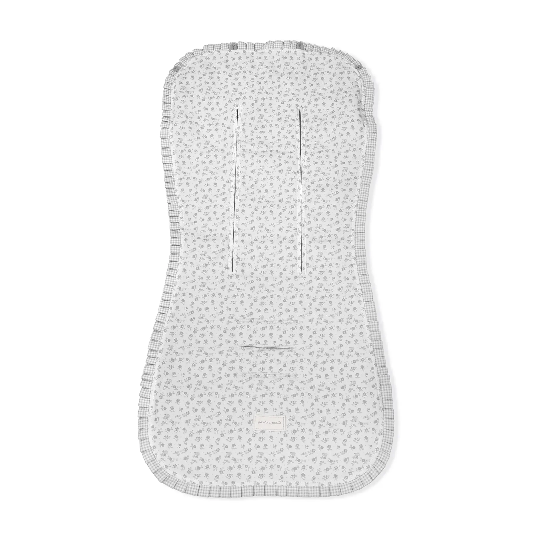 La colchoneta Little Bloom Flor gris de Pasito a pasito en tejido de algodón 100% estampado de flores es la cobertura ideal que se adapta a la mayoría de las sillas de paseo y darle mayor comodidad a tu hijo durante sus paseos en días calurosos. Está diseñada en el respaldar con una capa de tejido en material transpirable que aísla la humedad y evita la sudoración excesiva del bebe, protegiendo la silla para hacer el paseo más confortable. Este modelo está pensada para adaptarla a la mayoría de las sillitas de paseo ya que dispone de varias aperturas (ojales) y ajustes para cubrir la superficie donde se recuesta el bebé. Acabados de calidad. Todas nuestras fundas están fabricadas conforme a las más exigentes normativas europeas, con materiales de gran calidad, libres de colorantes azoicos, ftalatos y sustancias nocivas para la salud. Tela de fácil limpieza, se recomienda lavar a máquina a 30º. Los productos para bebé de Pasito a Pasito cuentan con un diseño muy diferente a todas las demás. Sus colecciones se caracterizan por el trabajo al detallada, pensadas siempre desde un punto de vista práctico. Utilizan materiales de primera calidad para remarcar la elegancia y la armonía en cada una de sus piezas. Nuestros modelos son exclusivos y de estilo inconfundible, pensados en las madres actuales que gozan de buen gusto y que aprecian los detalles tanto como nosotros. Especificaciones: Materiales: 100% algodón. Tamaño universal.