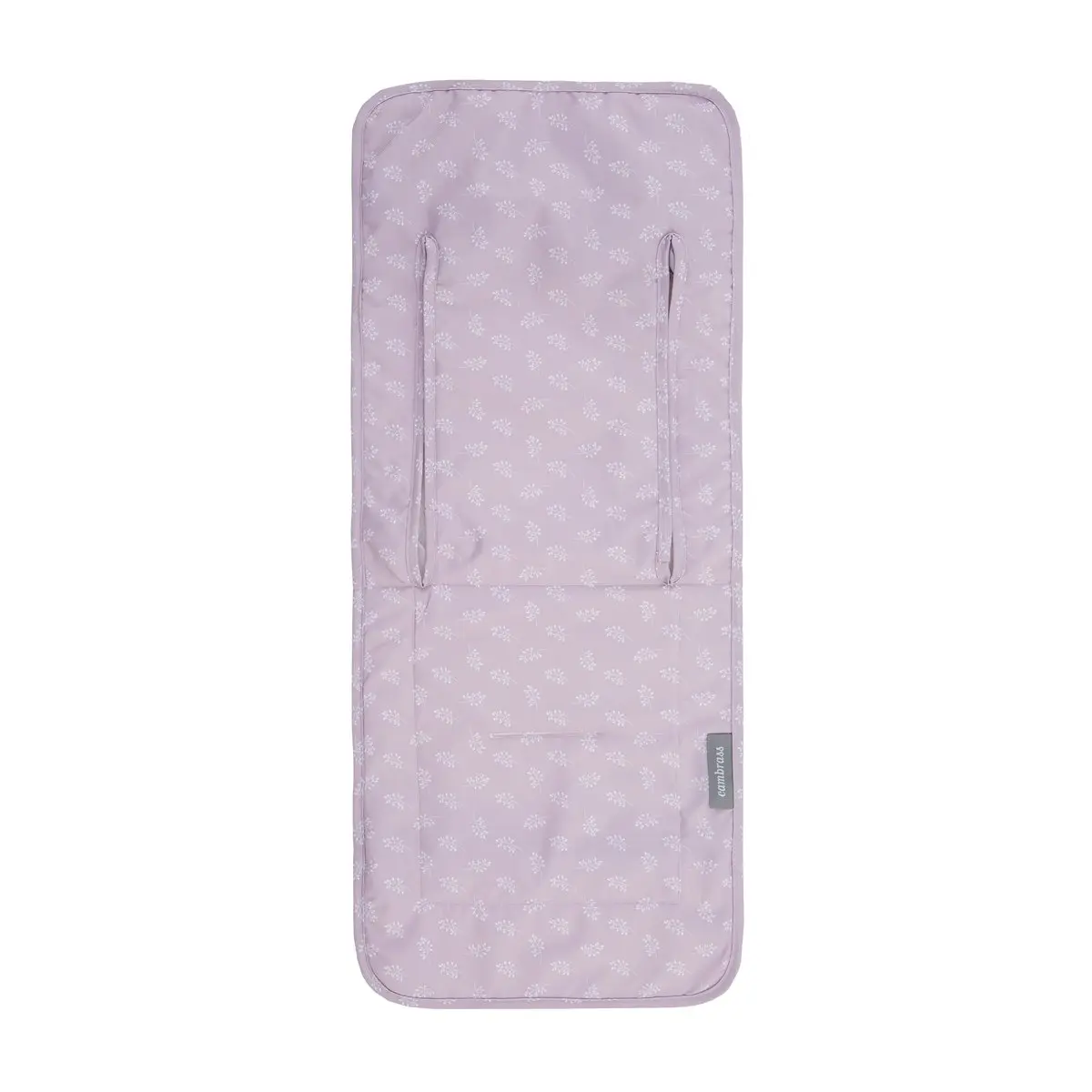 La colchoneta silla universal de Cambrass viene provista de ojales verticales con cierre de velcro para poder ajustar los arneses de la silla según vaya creciendo el bebé. En su parte trasera lleva cintas, gomas y ajustes para que quede perfectamente sujeta a la sillita. Además su tejido impermeable facilita su limpieza.