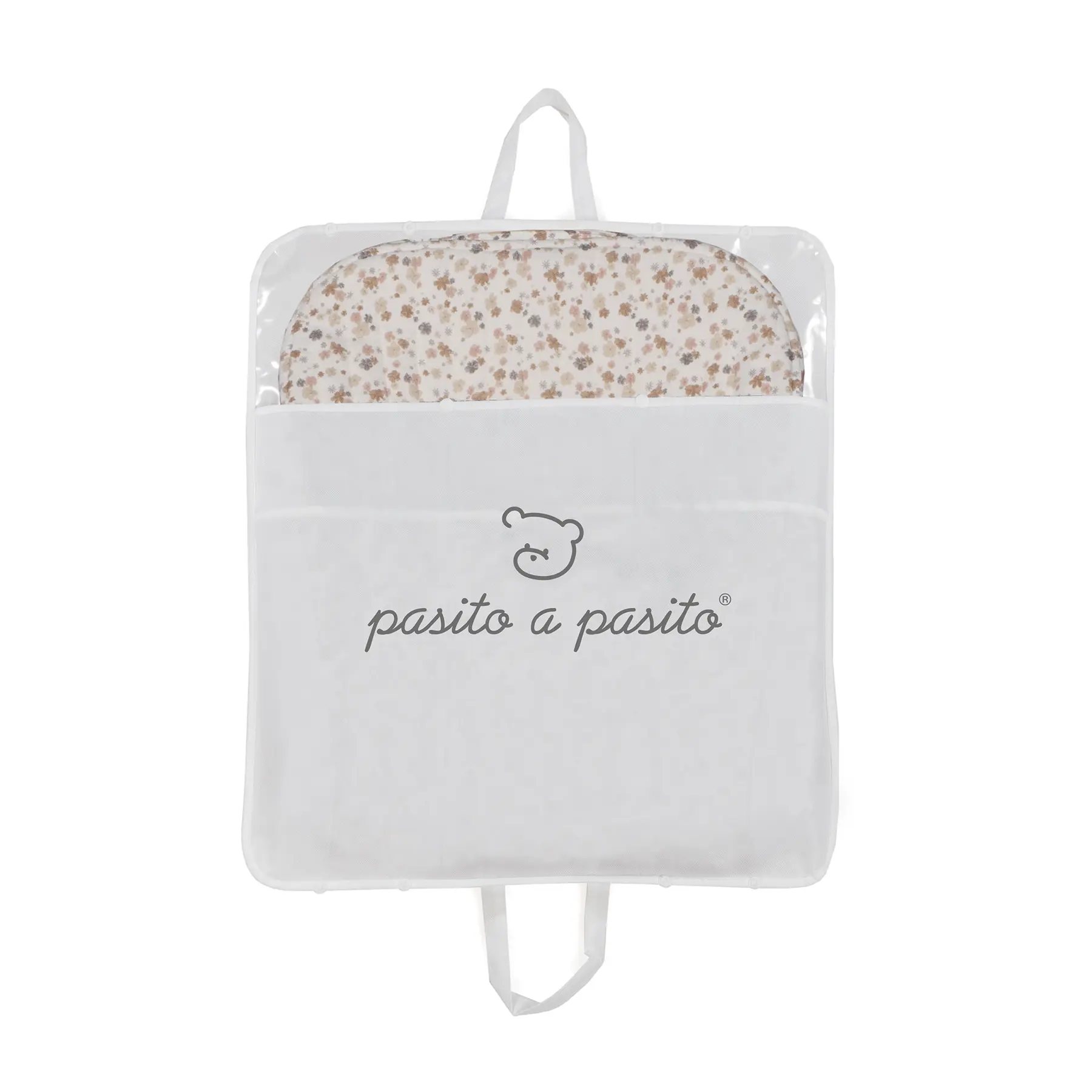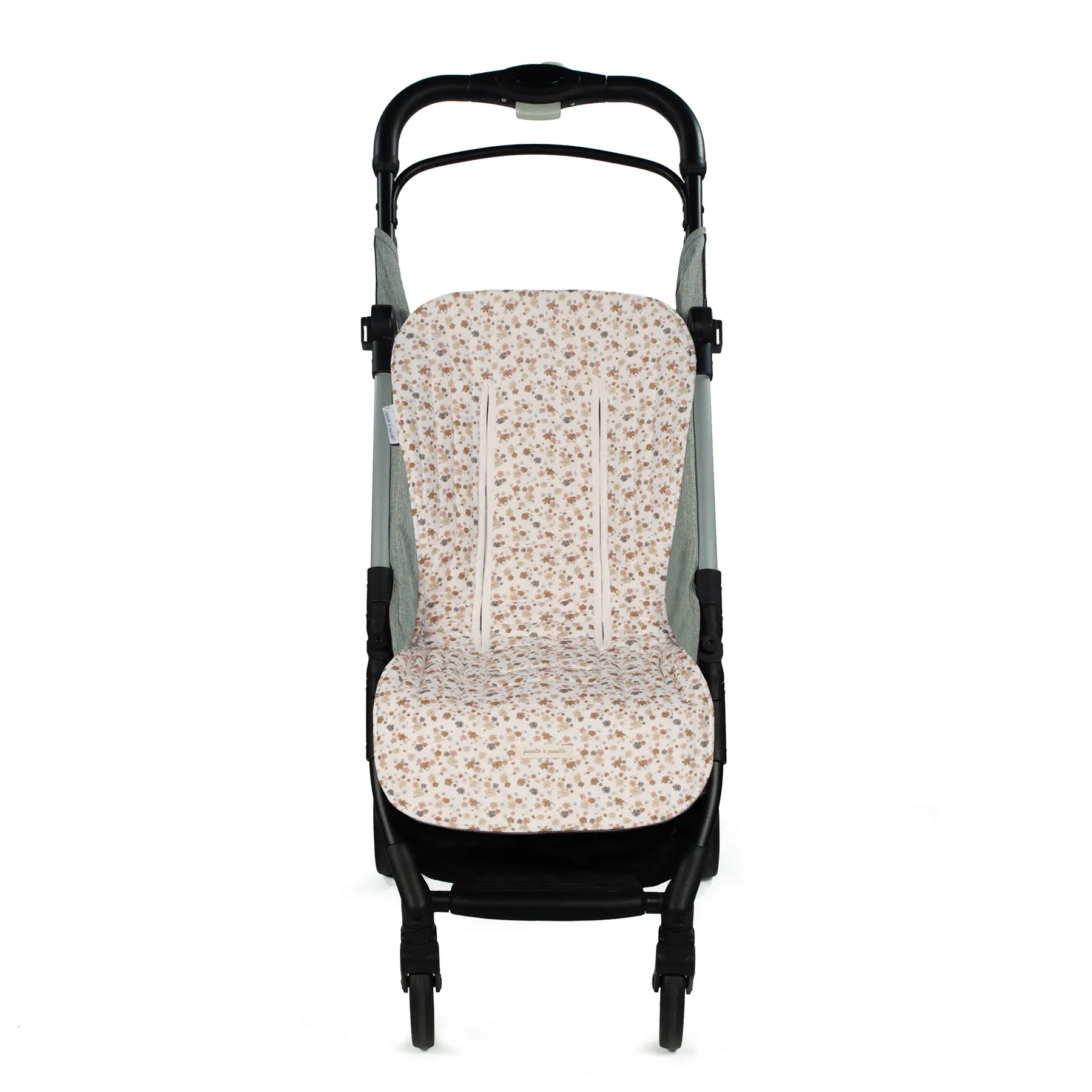 La colchoneta Somerset de Pasito a pasito en tejido estampado de flores es la cobertura ideal que se adapta a la mayoría de las sillas de paseo y darle mayor comodidad a tu hijo durante sus paseos en días calurosos. Está diseñada en el respaldar con una capa de tejido en material transpirable que aísla la humedad y evita la sudoración excesiva del bebe, protegiendo la silla para hacer el paseo más confortable. Este modelo está pensada para adaptarla a la mayoría de las sillitas de paseo ya que dispone de varias aperturas (ojales) y ajustes para cubrir la superficie donde se recuesta el bebé. Acabados de calidad. Todas nuestras fundas están fabricadas conforme a las más exigentes normativas europeas, con materiales de gran calidad, libres de colorantes azoicos, ftalatos y sustancias nocivas para la salud. Tela de fácil limpieza, se recomienda lavar a máquina a 30º. Los productos para bebé de Pasito a Pasito cuentan con un diseño muy diferente a todas las demás. Sus colecciones se caracterizan por el trabajo al detallada, pensadas siempre desde un punto de vista práctico. Utilizan materiales de primera calidad para remarcar la elegancia y la armonía en cada una de sus piezas. Nuestros modelos son exclusivos y de estilo inconfundible, pensados en las madres actuales que gozan de buen gusto y que aprecian los detalles tanto como nosotros. Especificaciones: Materiales: 100% algodón. Tamaño universal.