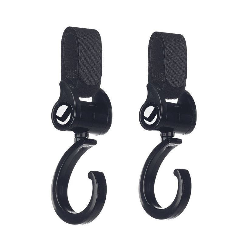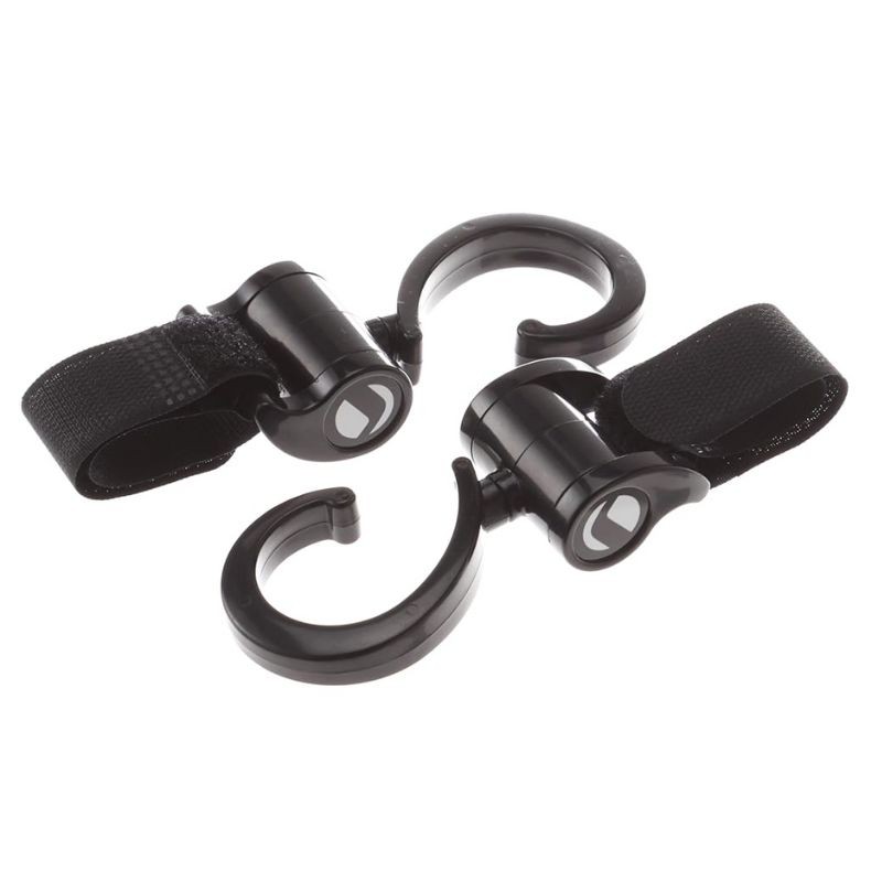 Pack de 2 ganchos colgadores multiusos de color negro. Átalos al chasis de tu carrito y cuelga lo que necesites.
