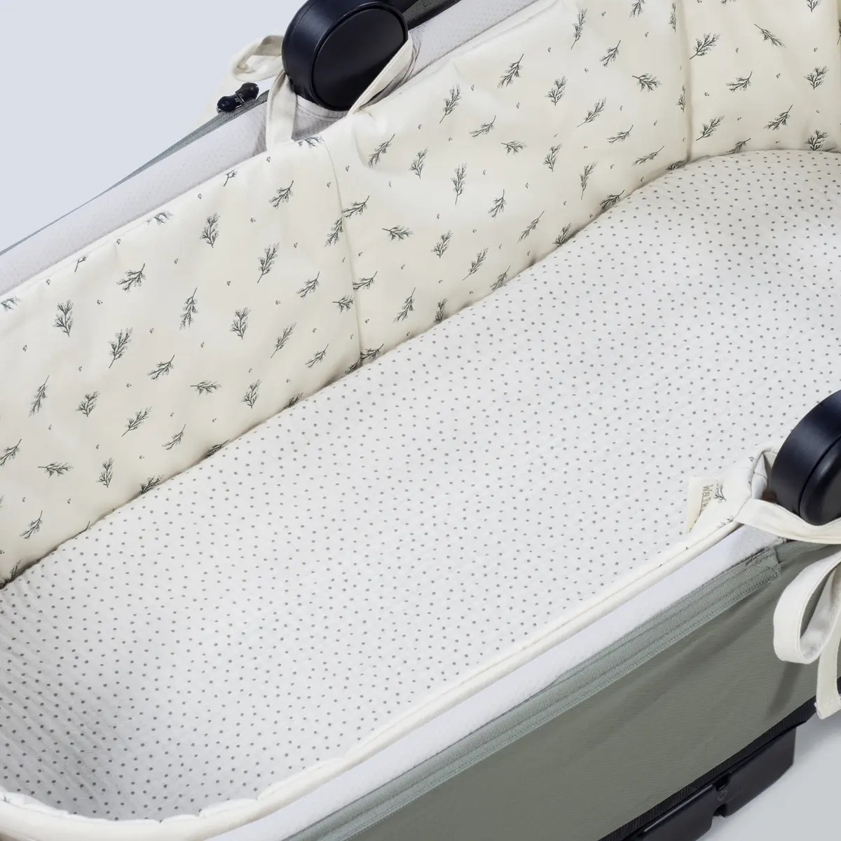 El cubre cuco con varillas y sábana bajera ajustable Mimosa Verde es el complemento perfecto para aportar suavidad y elegancia al capazo de tu bebé. Fabricado en algodón 100%, garantiza un tacto delicado y transpirable, ideal para la piel sensible del recién nacido. El cubre capazo con varillas se ajusta perfectamente al interior del capazo. Su diseño ajustable con lazos garantiza una perfecta adaptación al cuco proporcionando un acabado envolvente y seguro con un diseño encantador de estampado de flores en tonos neutros. La sábana bajera ajustable, confeccionada en muselina de algodón 100%, ofrece una suavidad excepcional y transpirabilidad óptima, asegurando el confort del bebé en todo momento. Compatible con la mayoría de los capazos. Este conjunto es ideal para mantener a tu bebé cómodo y protegido. Gran calidad y mucho estilo. Fabricado en materiales resistentes y de fácil limpieza a mano o a máquina a 30 °C. Walking Mum protege a tu bebé utilizando los mejores tejidos, libres de colorantes azoicos y sustancias nocivas para la salud. Nuestra colección Walking Mum está diseñada con un particular sello de estilo urbano y moderno que no pasa desapercibido, para vestir diferente los paseos con tu bebé. Los accesorios de maternidad de esta línea son más sport y prácticos, especialmente pensados en mamás y papás modernos que aprecian los diseños más actuales y en tendencia sin dejar de lado la calidad y la funcionalidad de los productos que complementan y hacen más cómodos todos los paseos con sus bebés. Especificaciones: Materiales: 100% Algodón. Medidas: Universal.