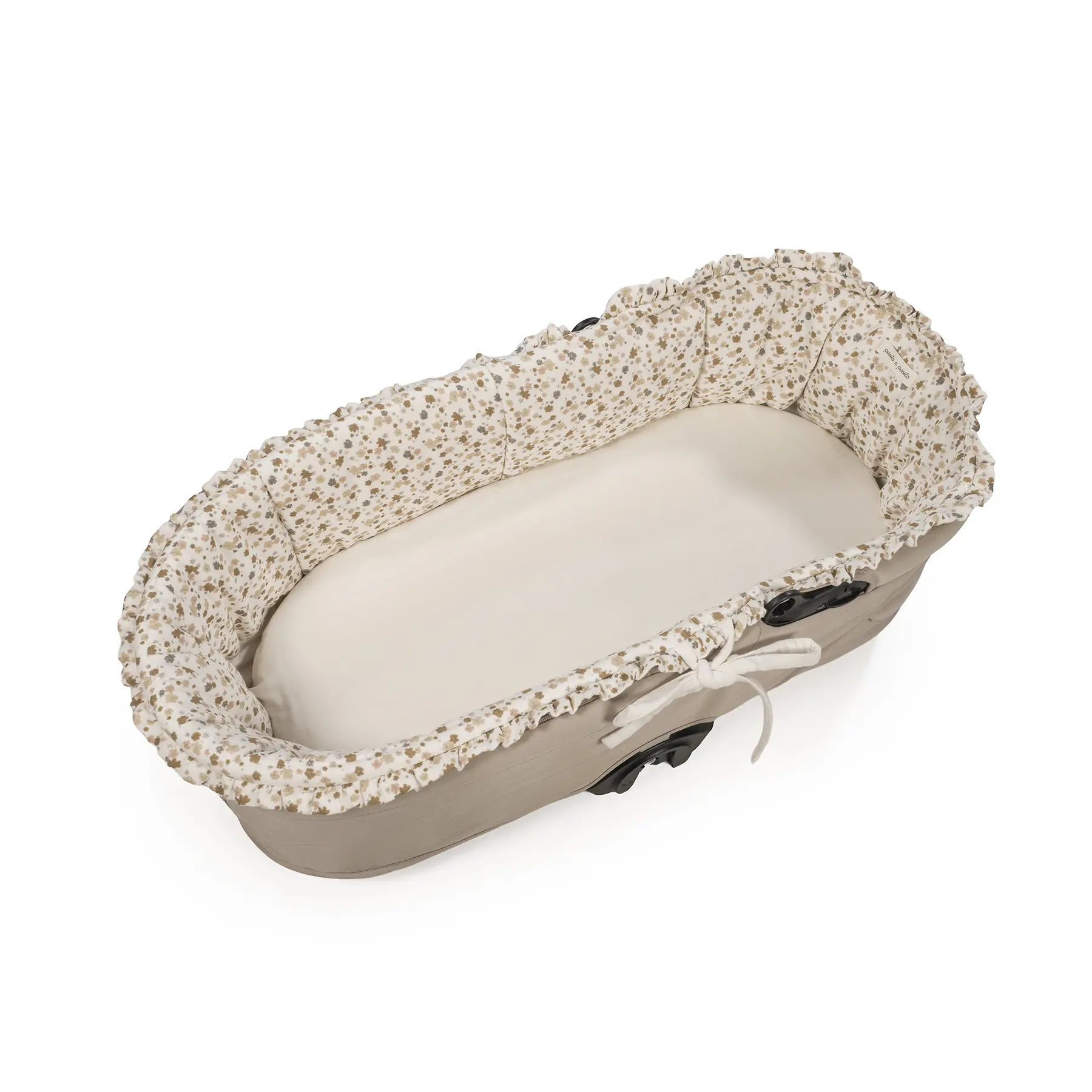 El cubre cuco con varillas y sábana bajera ajustable Somerset de Pasito a Pasito es el complemento perfecto para aportar suavidad y elegancia al capazo de tu bebé. Fabricado en algodón 100%, garantiza un tacto delicado y transpirable, ideal para la piel sensible del recién nacido. El cubre capazo con varillas se ajusta perfectamente al interior del capazo. Su diseño ajustable con lazos garantiza una perfecta adaptación al cuco proporcionando un acabado envolvente y seguro con un diseño encantador de estampado flores. La sábana bajera ajustable, confeccionada en muselina 100% algodón, ofrece una suavidad excepcional y transpirabilidad óptima, asegurando el confort del bebé en todo momento. Compatible con la mayoría de los capazos. Este conjunto es ideal para mantener a tu bebé cómodo y protegido, con el estilo y calidad que caracteriza a Pasito a Pasito. Todas nuestras fundas están fabricadas conforme a las más exigentes normativas europeas, con materiales de gran calidad, libres de colorantes azoicos, ftalatos y sustancias nocivas para la salud. Tela de fácil limpieza, se recomienda lavar a máquina a 30º. Los productos para bebé de Pasito a Pasito cuentan con un diseño muy diferente a todas las demás. Sus colecciones se caracterizan por el trabajo al detallada, pensadas siempre desde un punto de vista práctico. Utilizan materiales de primera calidad para remarcar la elegancia y la armonía en cada una de sus piezas. Nuestros modelos son exclusivos y de estilo inconfundible, pensados en las madres actuales que gozan de buen gusto y que aprecian los detalles tanto como nosotros. Especificaciones: Materiales: 100% algodón. Tamaño universal.