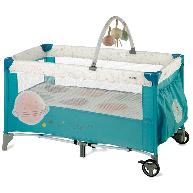 La Cuna Parque de Viaje Duo Level Toys de Jané ofrece seguridad y comodidad desde el nacimiento. Con dos niveles de altura, es ideal para dormir y jugar. Incluye un colchón plegable y laterales de malla transpirable para mayor visibilidad y ventilación. Su arco de juegos con juguetes colgantes estimula al bebé. Fácil de montar, desmontar y transportar gracias a su bolsa incluida, es perfecta para usar en casa o de viaje.