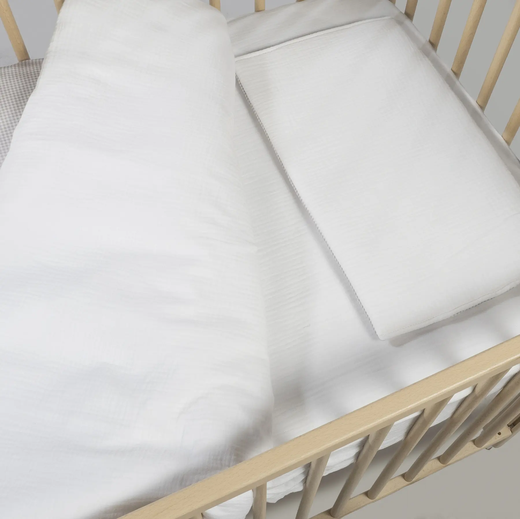Set completo para cuna de 120×60 cm Little Bloom Vichy gris de Pasito a Pasito: edredón, funda, sábana bajera y almohada. Prepara el nido perfecto para tu bebé con el set completo de ropa de cuna 120×60 cm de la adorable colección Little Bloom de Pasito a Pasito. Este conjunto todo en uno ha sido cuidadosamente diseñado para ofrecer el máximo confort, seguridad y estilo en la habitación de tu pequeño, cumpliendo con la estricta normativa EN-16780 para tu tranquilidad. El set incluye: funda de edredón y edredón (relleno), ambos confeccionados en 100% algodón de alta calidad, garantizan una suavidad inigualable y una transpirabilidad óptima. El edredón proporciona la calidez necesaria para un sueño confortable, mientras que la funda, con el encantador estampado vichy en tonos grises, añade un toque de dulzura y elegancia a la cuna. Sábana bajera ajustable de muselina 100% algodón, un elemento esencial para el descanso del bebé. Fabricada con muselina de algodón 100%, esta sábana es excepcionalmente suave, ligera y transpirable, ideal para la delicada piel del recién nacido. Su diseño ajustable con elástico asegura un ajuste perfecto al colchón de 120×60 cm, evitando arrugas y garantizando una superficie de descanso segura. Almohada con rejilla 3D transpirable, pensada para el soporte y la ventilación. El interior de la almohada incorpora una rejilla 3D transpirable que favorece la circulación del aire, ayudando a prevenir la acumulación de calor y humedad. Esto contribuye a un entorno de sueño más fresco, higiénico y seguro para tu bebé. La colección Little Bloom de Pasito a Pasito se distingue por su diseño atemporal y unisex, que combina a la perfección con cualquier estilo de decoración infantil. Los materiales utilizados, 100% algodón en todas las piezas, son respetuosos con la piel sensible del bebé, además de ser fáciles de mantener, ya que todas las prendas son lavables a máquina. Este juego de cuna de 120×60 cm es la solución ideal para vestir la cuna de tu bebé con productos de alta calidad que priorizan su bienestar. Un regalo perfecto para futuros padres o una inversión inteligente para asegurar un ambiente de sueño seguro, cómodo y hermoso. Descubre la excelencia de Pasito a Pasito en cada detalle. Set completo de cuna 120×60 Little Bloom de Pasito a Pasito: edredón, funda, sábana bajera de muselina y almohada transpirable. 100% algodón. ¡Confort y seguridad! Todos nuestros productos están fabricados conforme a las más exigentes normativas europeas, con materiales de gran calidad, libres de colorantes azoicos, ftalatos y sustancias nocivas para la salud. Tela de fácil limpieza, se recomienda lavar a máquina a 30º. Los productos para bebé de Pasito a Pasito cuentan con un diseño muy diferente a todas las demás. Sus colecciones se caracterizan por el trabajo al detallada, pensadas siempre desde un punto de vista práctico. Utilizan materiales de primera calidad para remarcar la elegancia y la armonía en cada una de sus piezas. Nuestros modelos son exclusivos y de estilo inconfundible, pensados en las madres actuales que gozan de buen gusto y que aprecian los detalles tanto como nosotros. TOG 2,5 (Thermal Overall Grade)