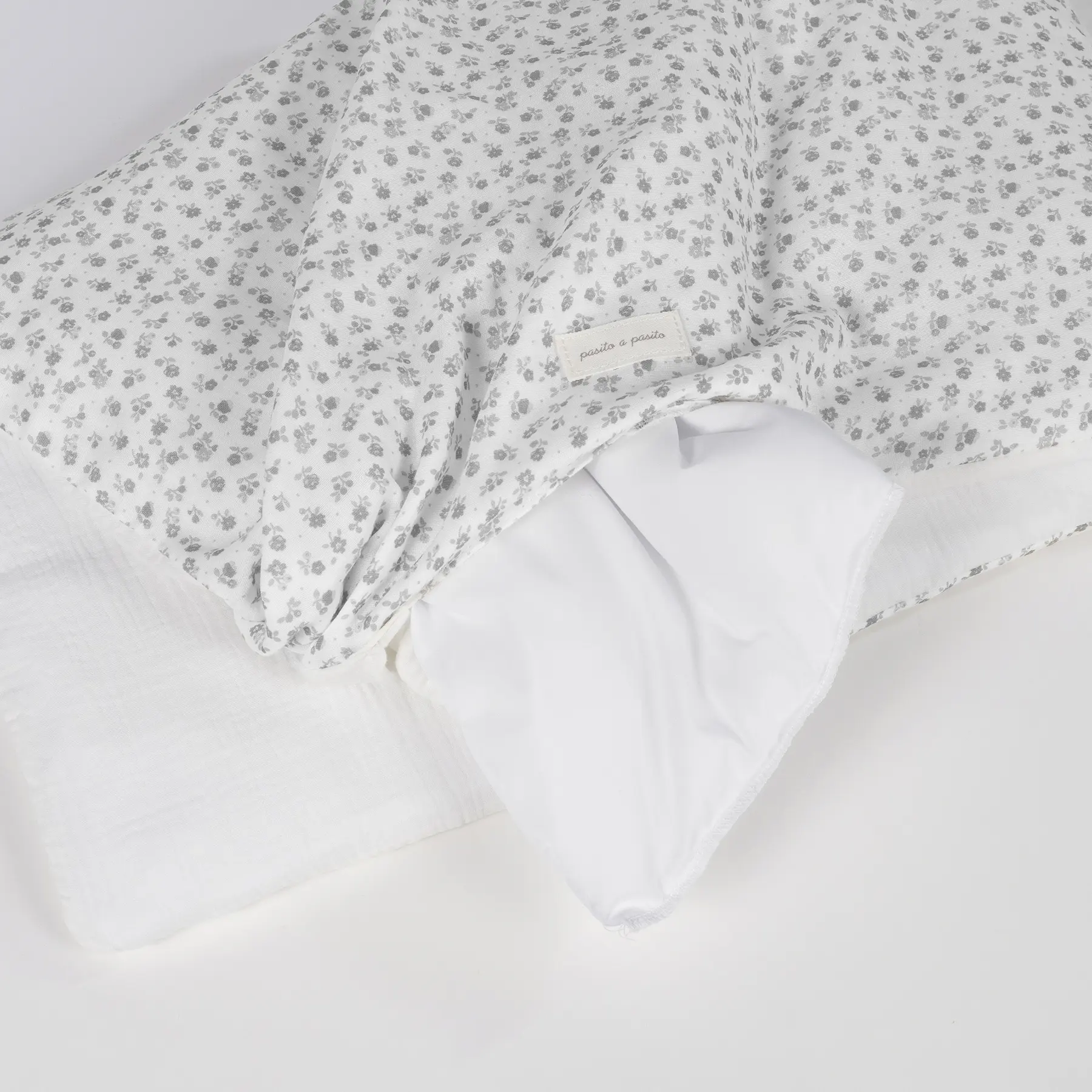 Set completo para minicuna de 90×50 cm Little Bloom Flor gris de Pasito a Pasito: edredón, funda, sábana bajera y almohada. Prepara el nido perfecto para tu bebé con el set completo de ropa de minicuna 90×50 cm de la adorable colección Little Bloom de Pasito a Pasito. Este conjunto todo en uno ha sido cuidadosamente diseñado para ofrecer el máximo confort, seguridad y estilo en la habitación de tu pequeño, cumpliendo con la estricta normativa EN-16780 para tu tranquilidad. El set incluye: funda de edredón y edredón (relleno), ambos confeccionados en 100% algodón de alta calidad, garantizan una suavidad inigualable y una transpirabilidad óptima. El edredón proporciona la calidez necesaria para un sueño confortable, mientras que la funda, con el encantador estampado floral en tonos grises, añade un toque de dulzura y elegancia a la cuna. Sábana bajera ajustable de muselina 100% algodón, un elemento esencial para el descanso del bebé. Fabricada con muselina de algodón 100%, esta sábana es excepcionalmente suave, ligera y transpirable, ideal para la delicada piel del recién nacido. Su diseño ajustable con elástico asegura un ajuste perfecto al colchón de 90×50 cm, evitando arrugas y garantizando una superficie de descanso segura. Almohada con rejilla 3D transpirable, pensada para el soporte y la ventilación. El interior de la almohada incorpora una rejilla 3D transpirable que favorece la circulación del aire, ayudando a prevenir la acumulación de calor y humedad. Esto contribuye a un entorno de sueño más fresco, higiénico y seguro para tu bebé. La colección Little Bloom de Pasito a Pasito se distingue por su diseño atemporal, que combina a la perfección con cualquier estilo de decoración infantil. Los materiales utilizados, 100% algodón en todas las piezas, son respetuosos con la piel sensible del bebé, además de ser fáciles de mantener, ya que todas las prendas son lavables a máquina. Este juego de minicuna de 90×50 cm es la solución ideal para vestir la minicuna de tu bebé con productos de alta calidad que priorizan su bienestar. Un regalo perfecto para futuros padres o una inversión inteligente para asegurar un ambiente de sueño seguro, cómodo y hermoso. Descubre la excelencia de Pasito a Pasito en cada detalle. Set completo de minicuna 90×50 Little Bloom de Pasito a Pasito: edredón, funda, sábana bajera de muselina y almohada transpirable. 100% algodón. ¡Confort y seguridad! Todos nuestros productos están fabricados conforme a las más exigentes normativas europeas, con materiales de gran calidad, libres de colorantes azoicos, ftalatos y sustancias nocivas para la salud. Tela de fácil limpieza, se recomienda lavar a máquina a 30º. Los productos para bebé de Pasito a Pasito cuentan con un diseño muy diferente a todas las demás. Sus colecciones se caracterizan por el trabajo al detallada, pensadas siempre desde un punto de vista práctico. Utilizan materiales de primera calidad para remarcar la elegancia y la armonía en cada una de sus piezas. Nuestros modelos son exclusivos y de estilo inconfundible, pensados en las madres actuales que gozan de buen gusto y que aprecian los detalles tanto como nosotros. TOG 2,5 (Thermal Overall Grade)