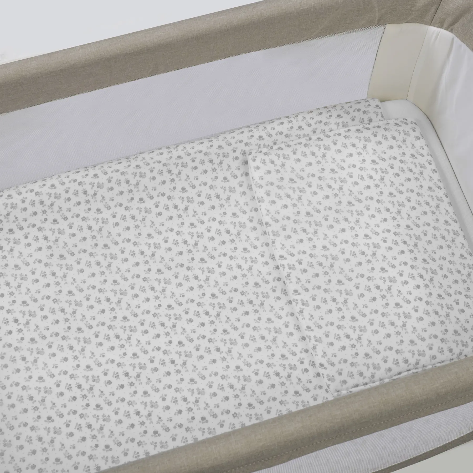 Edredón + sábana bajera + almohada cuna 90×50 cm Little Bloom Flor Gris TOG 2,5