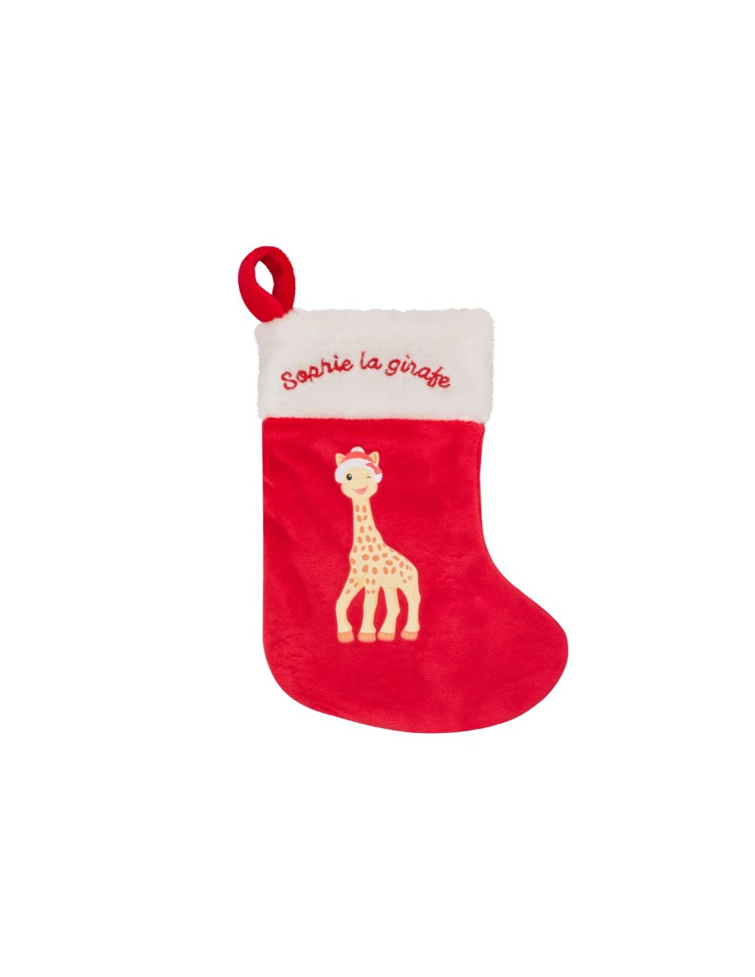 - Calcetín Navideño: Ideal para colgar en el árbol o en la chimenea, este encantador calcetín con motivos de Sophie añade un toque especial a la decoración navideña.