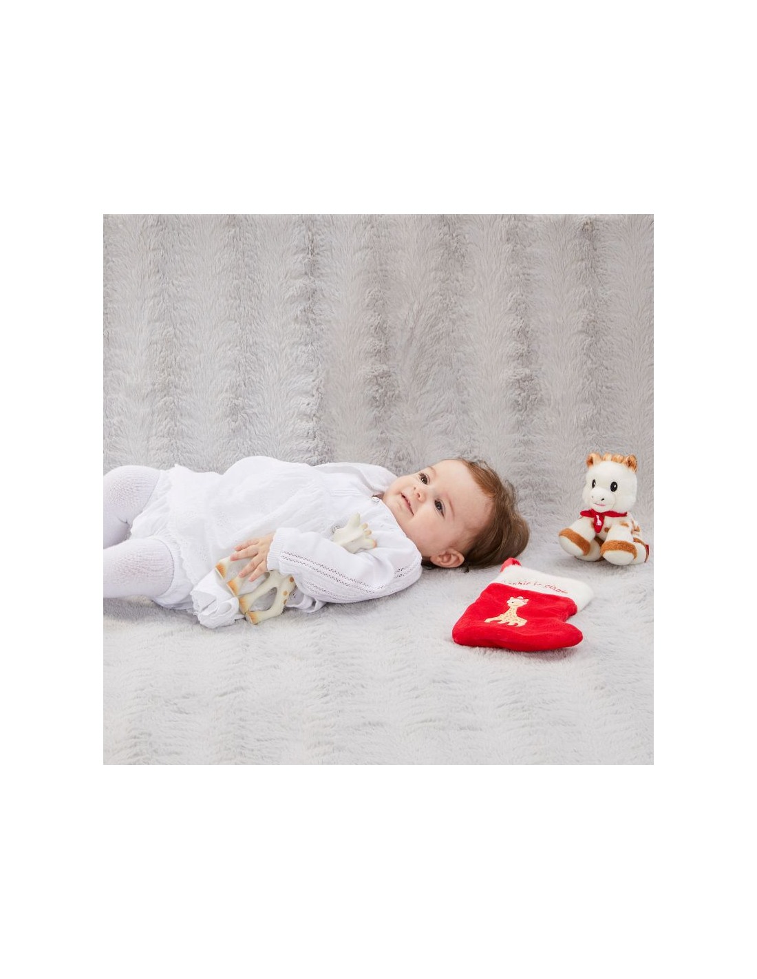 - Peluche de Sophie: Un tierno y festivo peluche de Sophie, perfecto para que tu bebé lo abrace durante las noches de Navidad. Está hecho con materiales suaves y seguros para ofrecer la máxima comodidad.