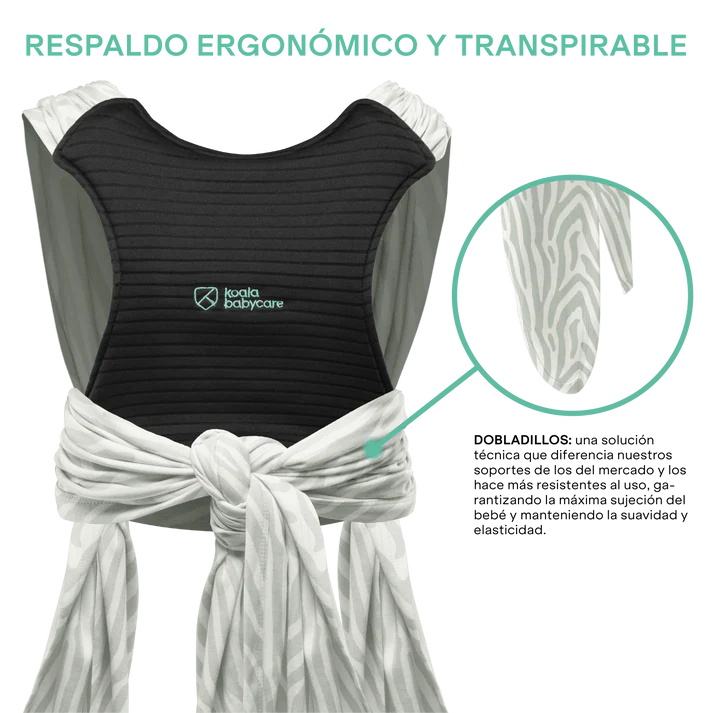 Su diseño incluye un respaldo ergonómico transpirable, que distribuye el peso del bebé en hombros, espalda y zona lumbar, reduciendo molestias y dolores de espalda. Y a diferencia de los fulares clásicos, ofrece colocación muy sencilla y gran confort para los papis y para el bebé.