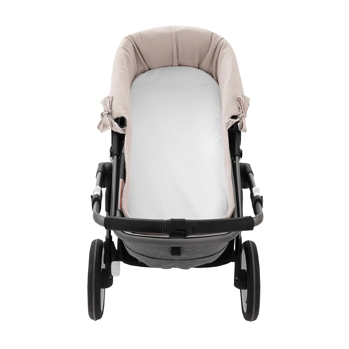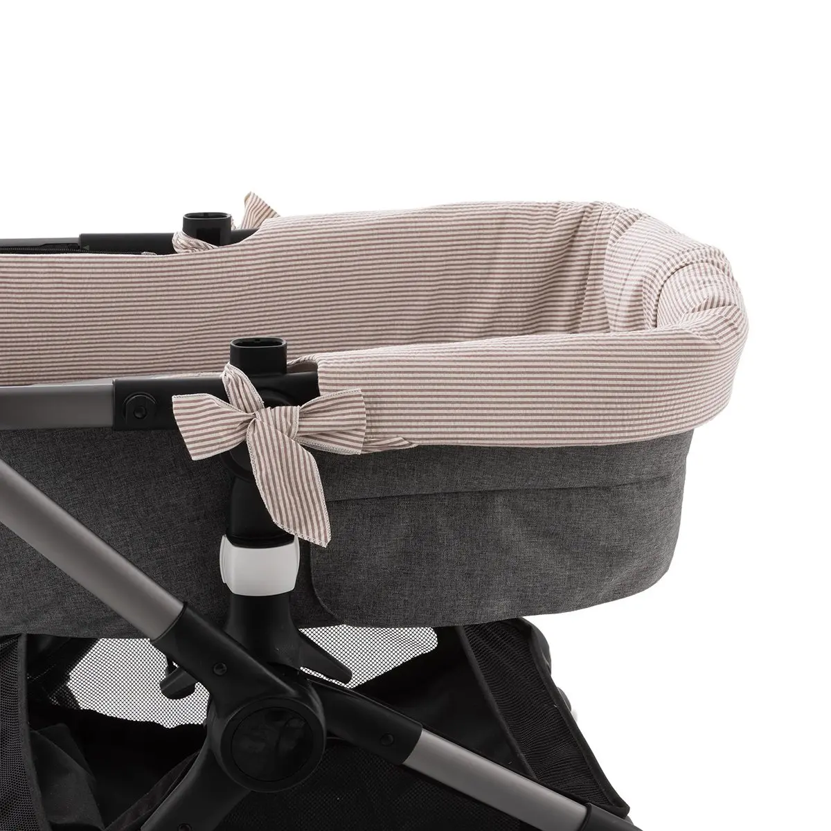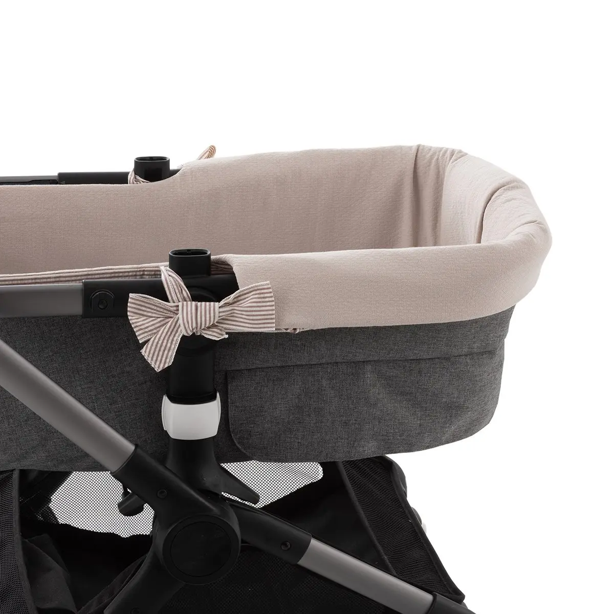 Garnitura reversible para capazo con capota y sistema de cremallera, diseñada para vestir y proteger el interior del capazo con un ajuste preciso y funcional.