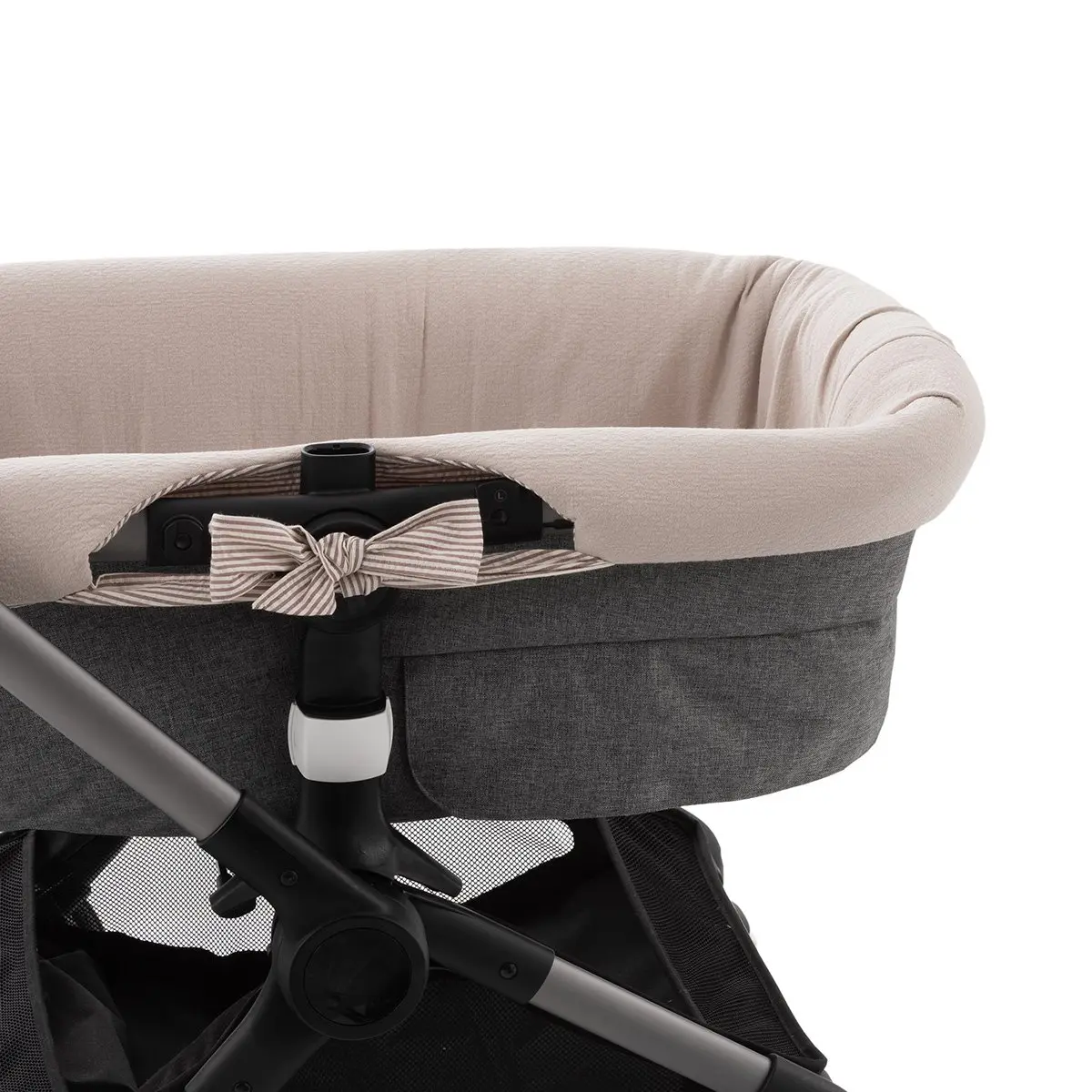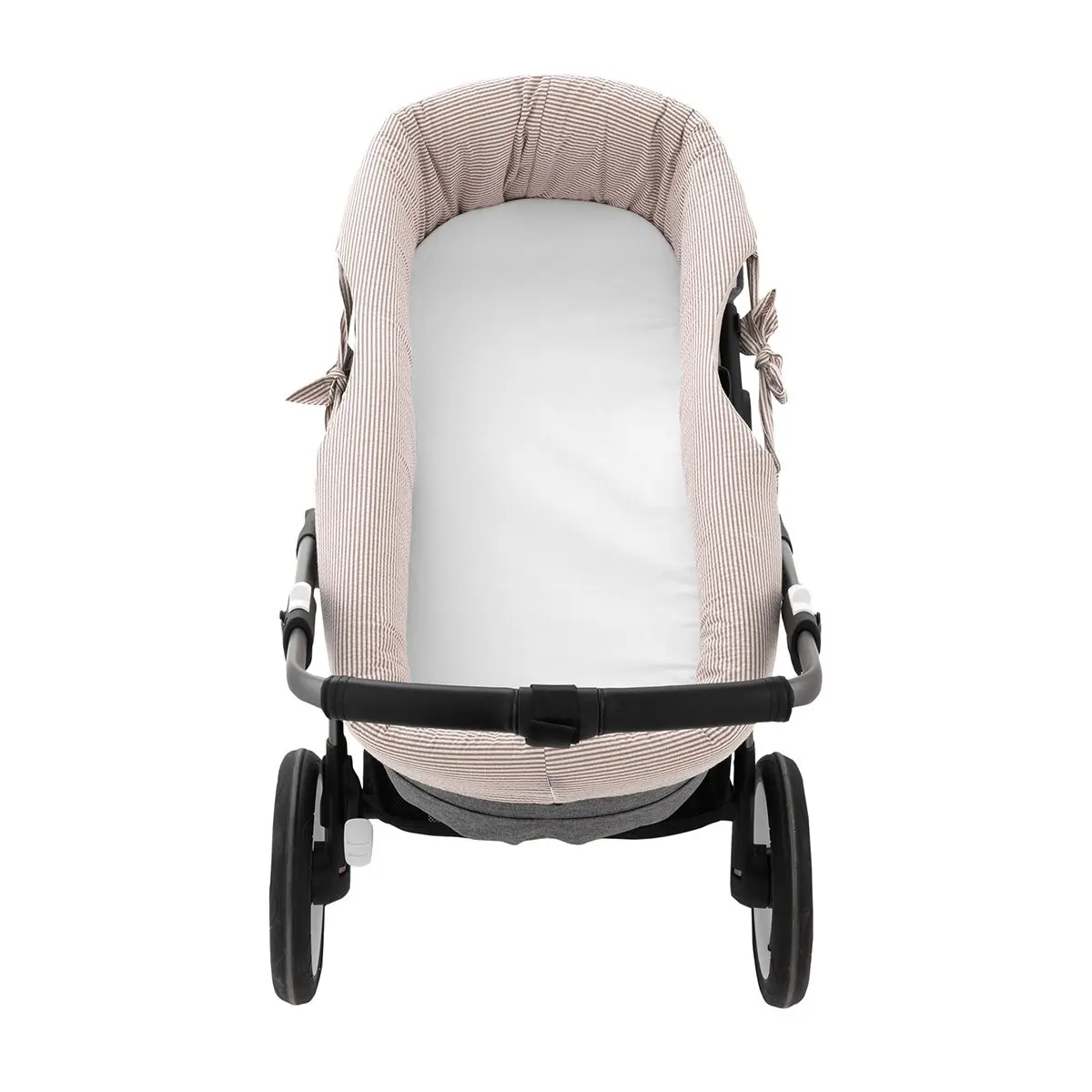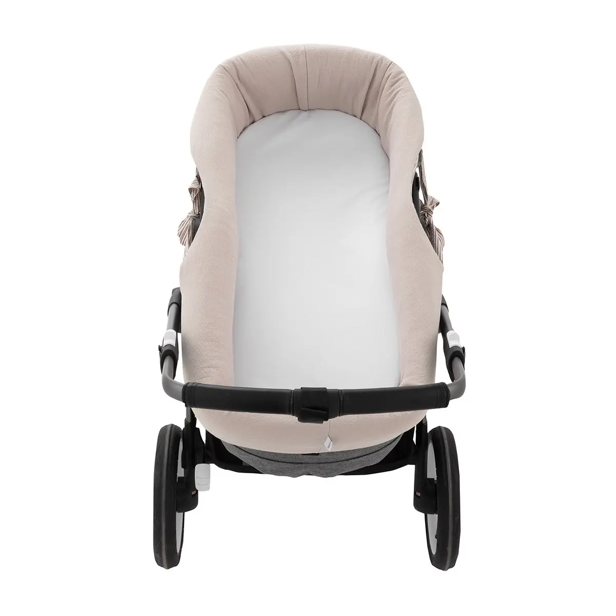 Gracias a su confección textil, se adapta al interior del capazo sin necesidad de cierres, facilitando su colocación y retirada. Fabricada con tejidos suaves y agradables al tacto, proporciona confort al bebé y protege el interior del capazo, siendo una opción práctica y funcional para el uso diario.
